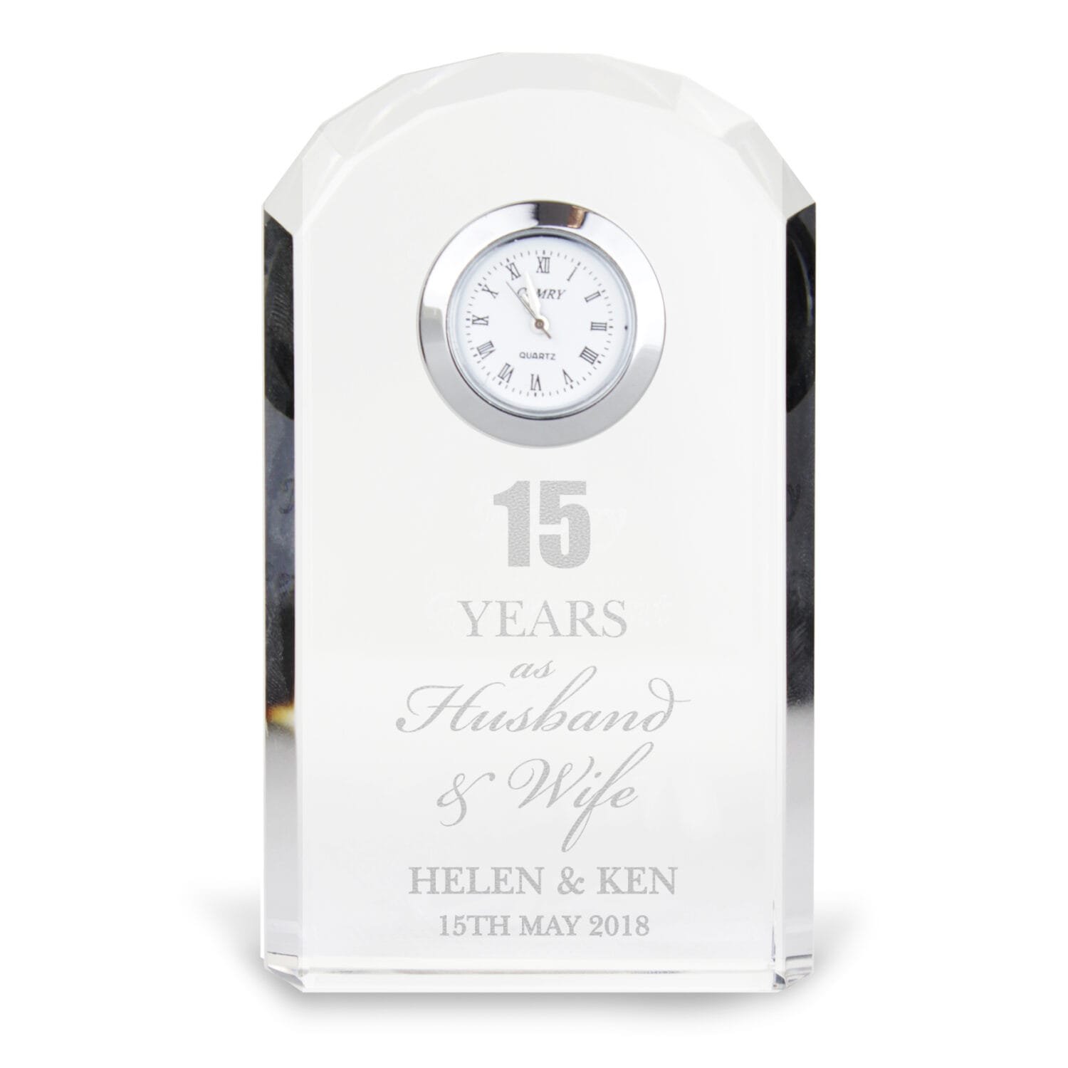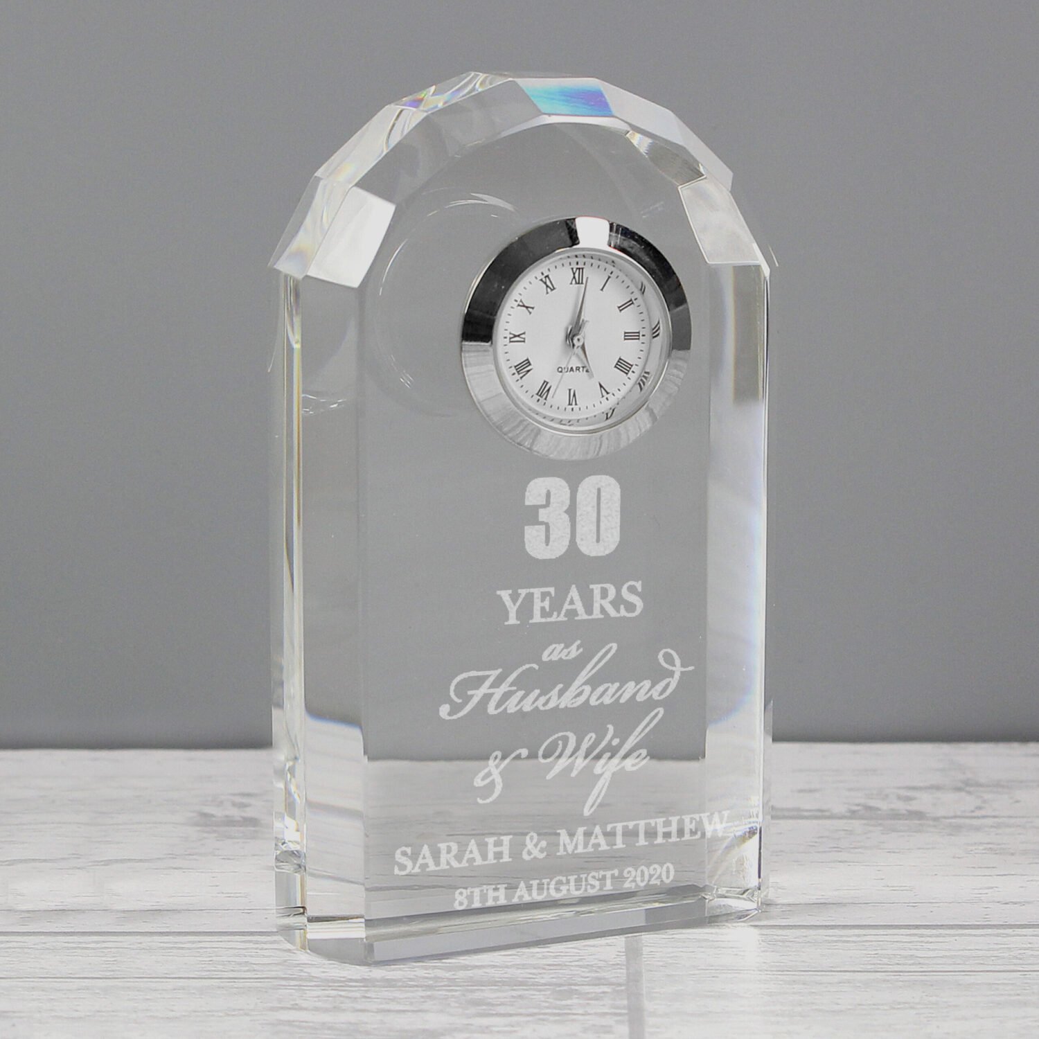 Celebrate a timeless love with this elegant Personalised Anniversary Crystal Mantel Clock. Beautifully crafted from crystal and featuring a sleek, classic clock face, this stunning piece makes a meaningful keepsake for a couple’s special milestone.