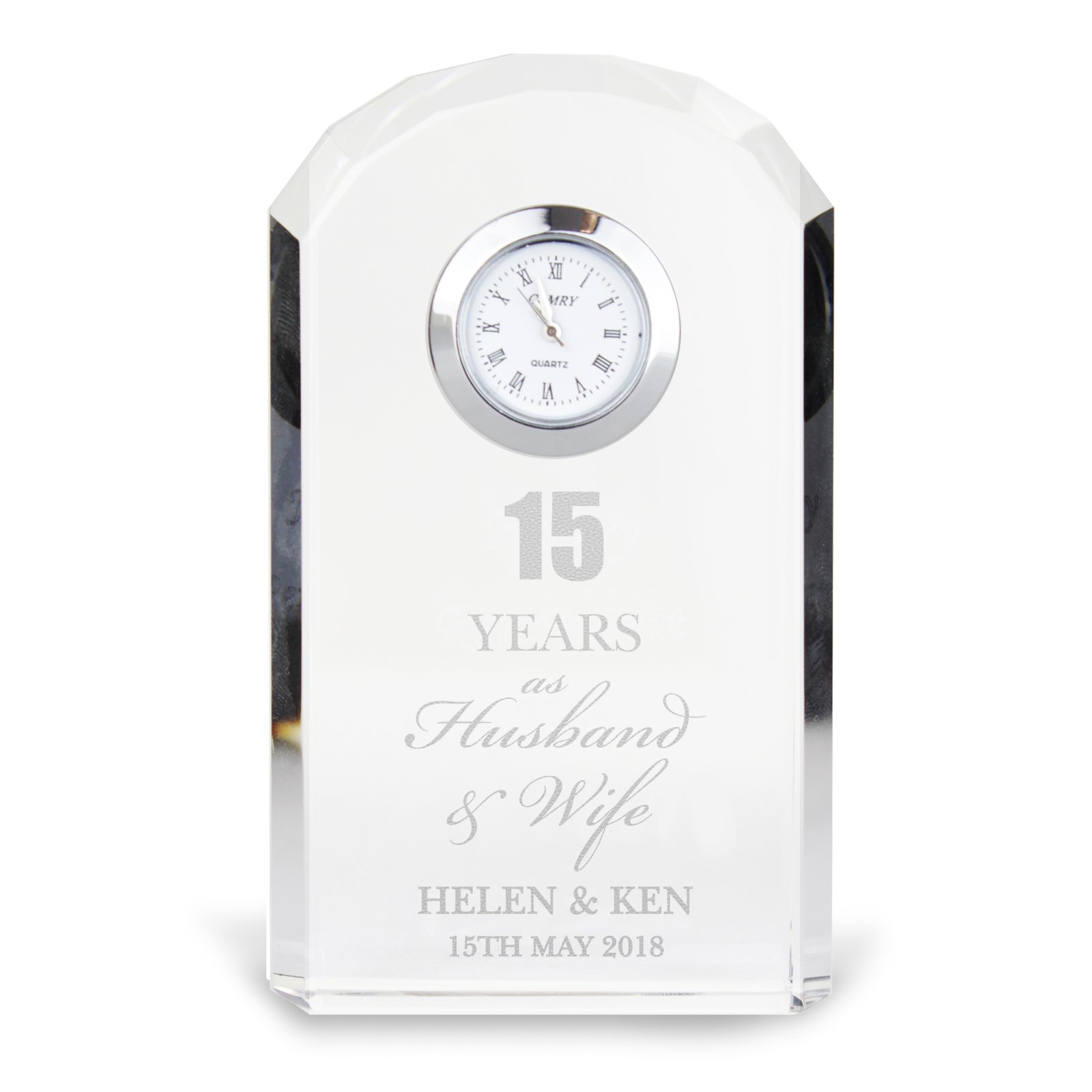 Celebrate a timeless love with this elegant Personalised Anniversary Crystal Mantel Clock. Beautifully crafted from crystal and featuring a sleek, classic clock face, this stunning piece makes a meaningful keepsake for a couple’s special milestone.