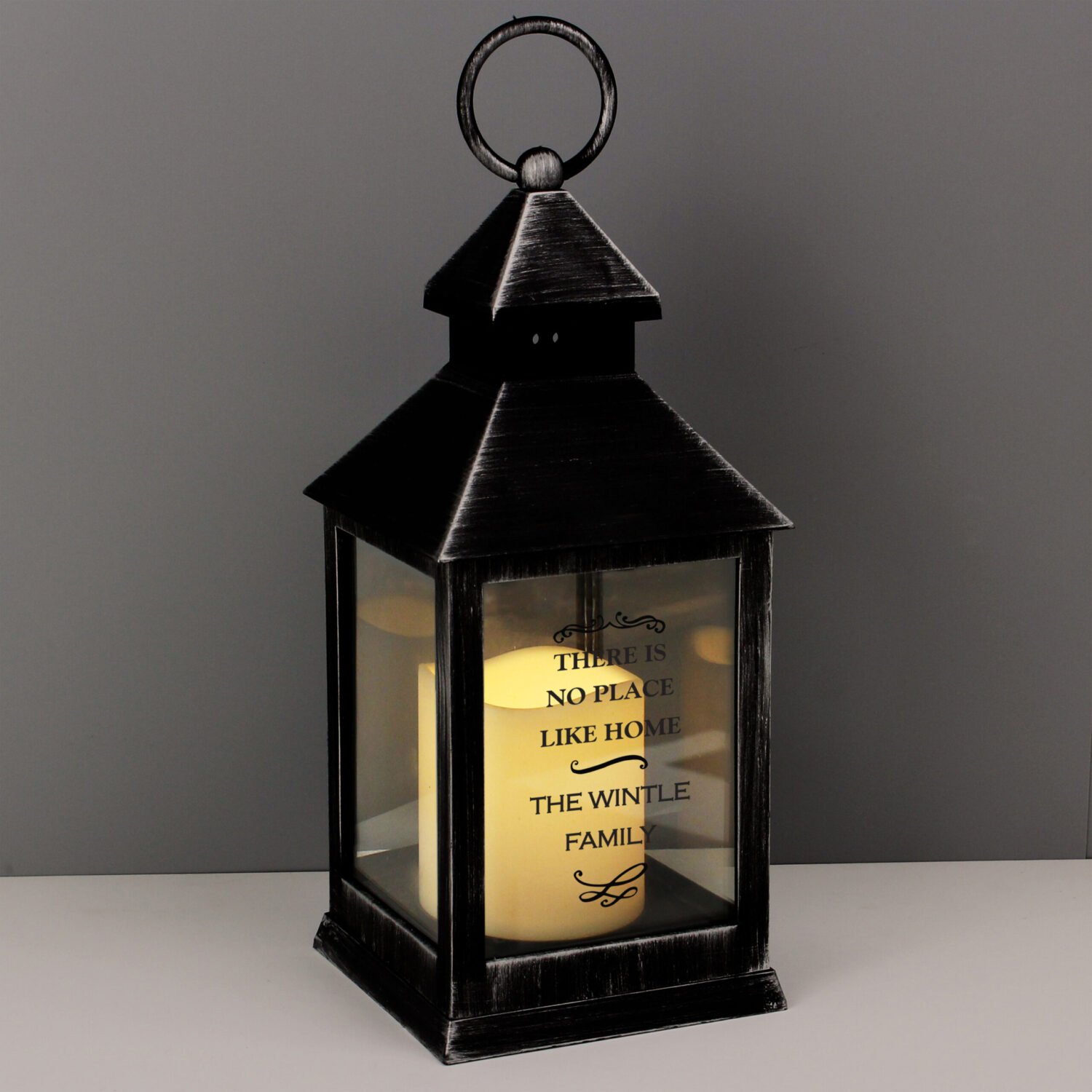 Enhance the ambiance of any room with this beautifully crafted Personalised Antique Scroll Black Light-Up Lantern. Featuring an elegant antique scroll design and a rustic matte black finish, this lantern combines classic style with modern convenience, making it a perfect personalised gift or home accent.