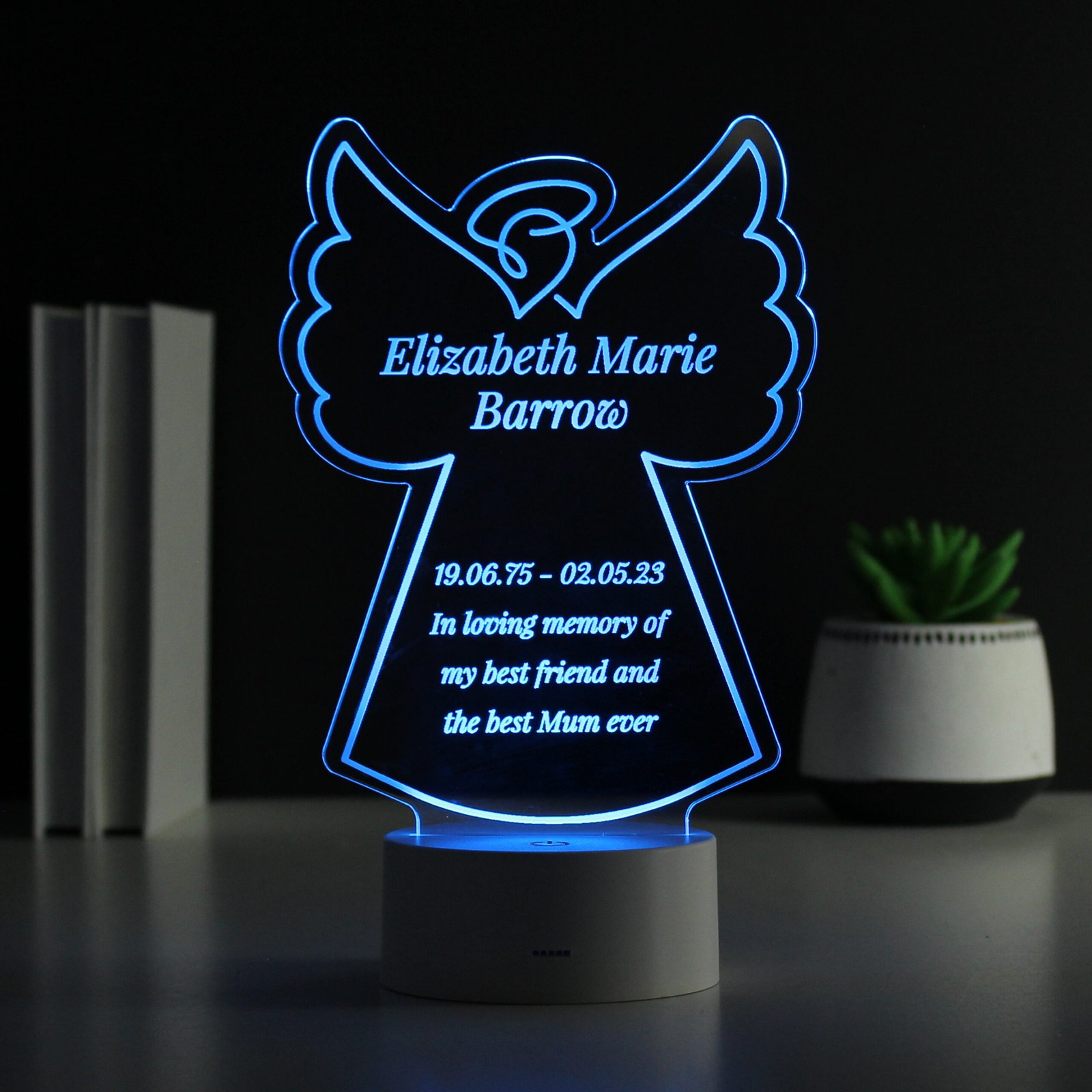 Personalised Any Message Angel Shaped Memorial Colour Changing LED Light