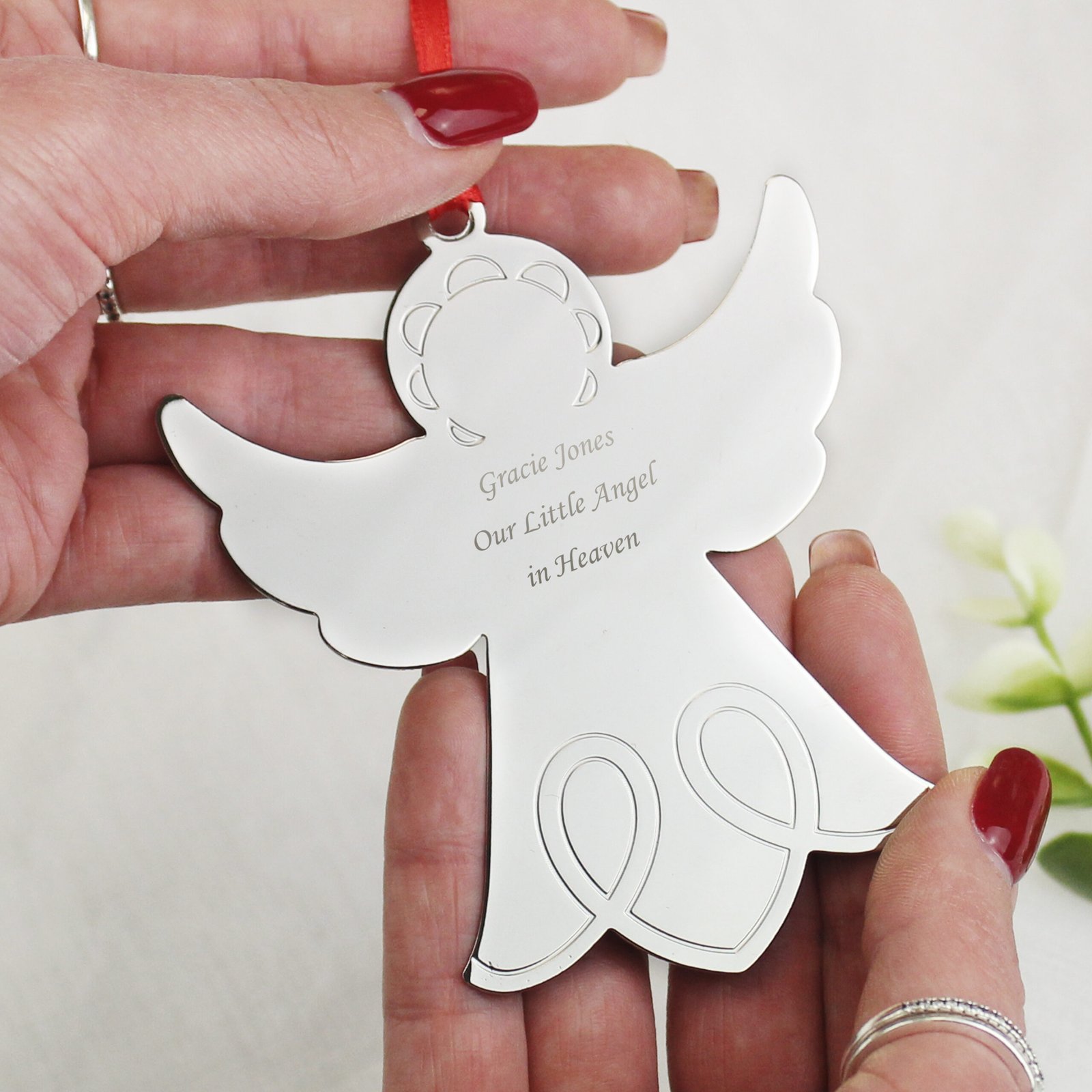 Personalised Any Message Angel Shaped Silver Metal Christmas Tree Decoration