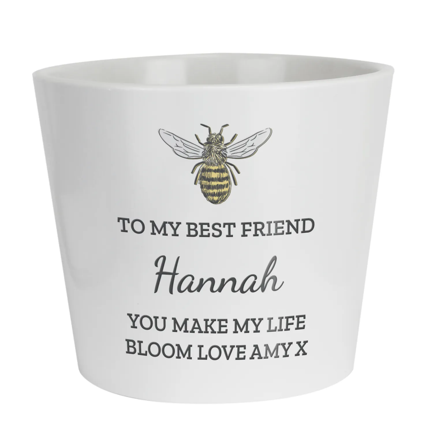 Personalised Any Message Bee Motif White Ceramic Indoor Plant Pot