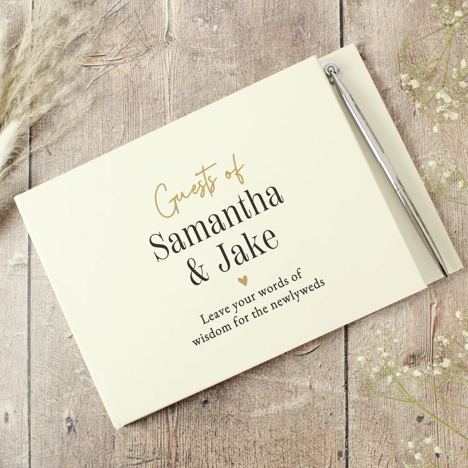Create a lasting reminder of a memorable day with this Personalised Black & Gold Guest Book & Pen, a timeless keepsake filled with messages from the people who matter most.