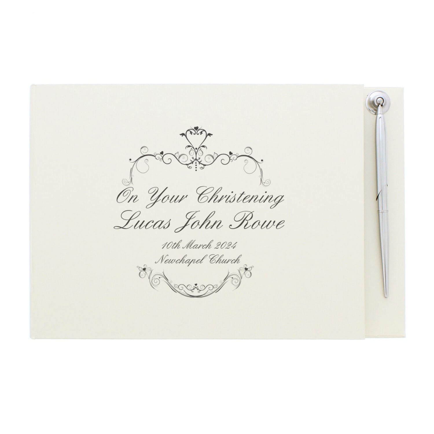 Personalised Any Message Black Ornate Swirl Design Hardback Guest Book & Pen