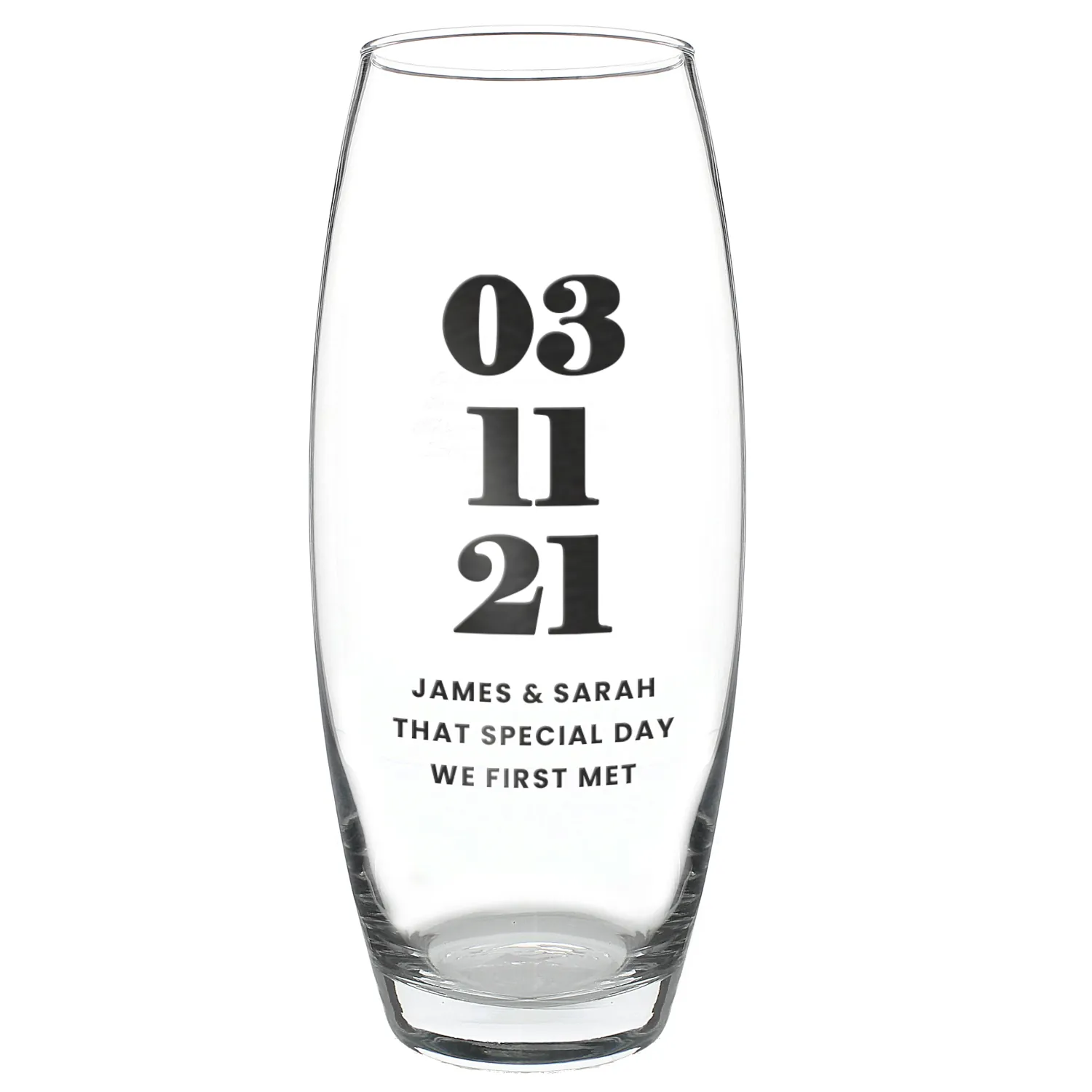 Make your loved ones’ celebrations unforgettable with this Personalised Bold Special Date Tapered Glass Bullet Vase—a thoughtful, unique, and stylish keepsake.
