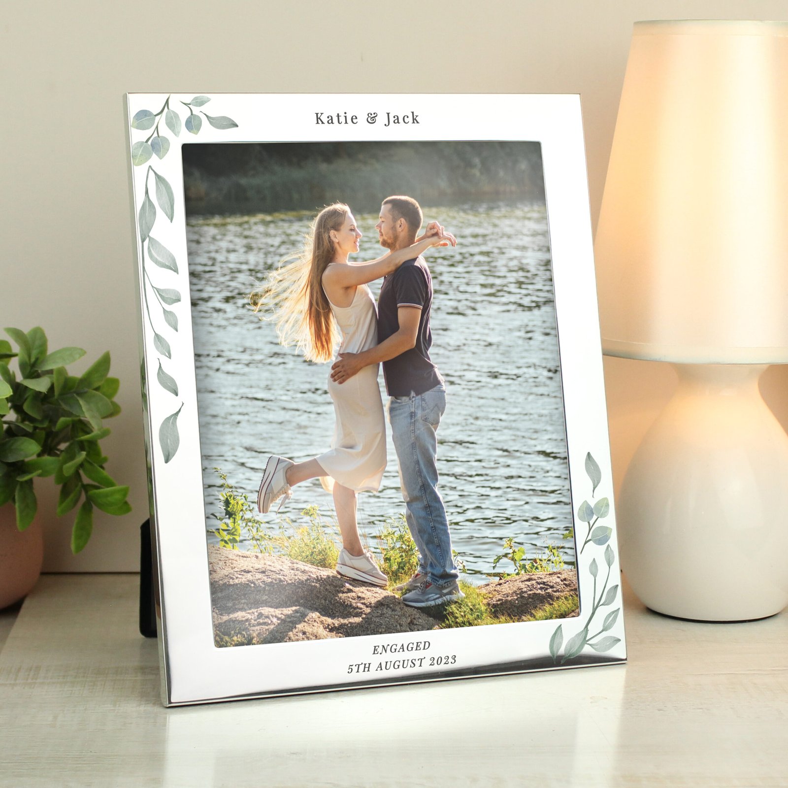 Personalised Any Message Botanical Design 8×10 Portrait Silver Aluminium Photo Frame