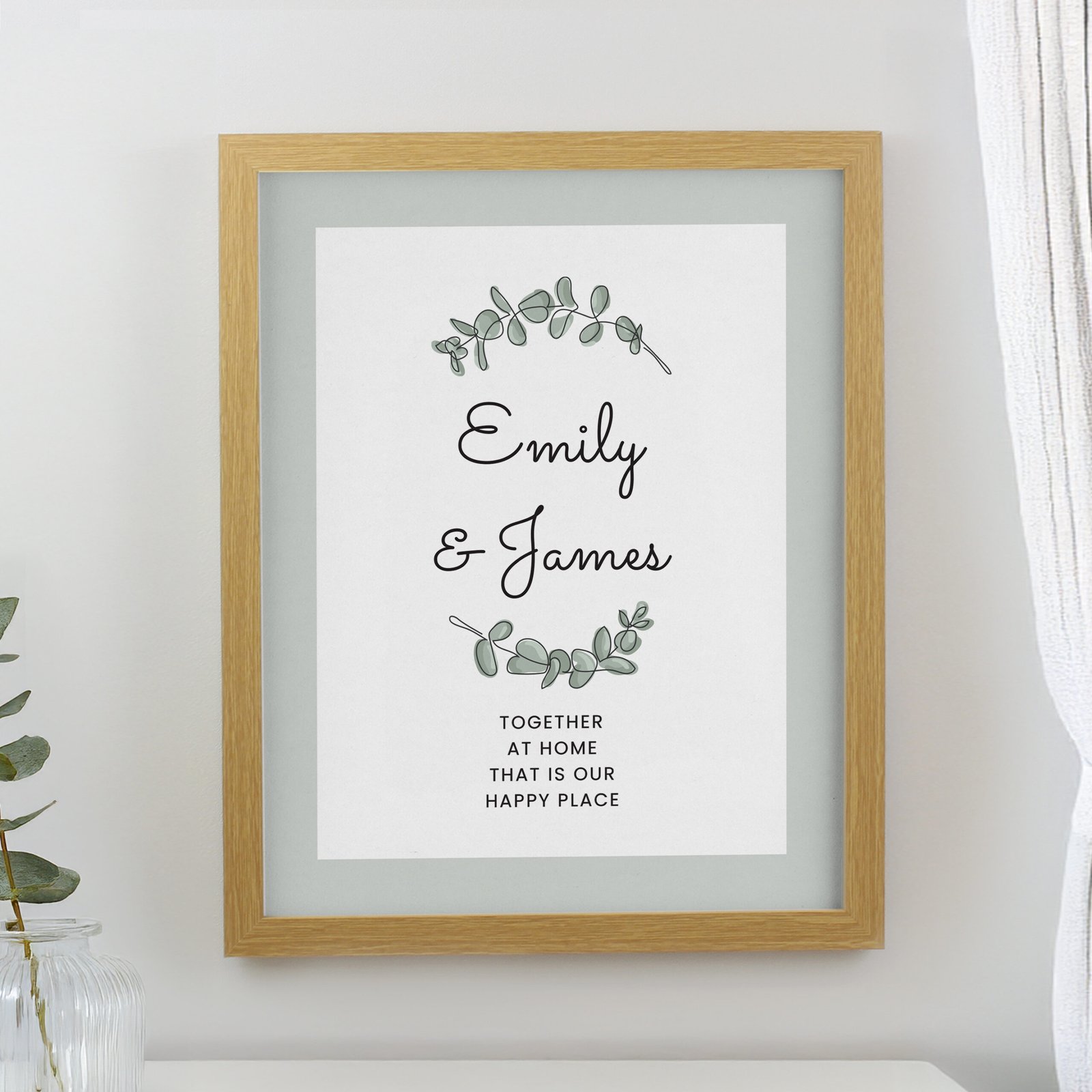 Personalised Any Message Botanical Design Couples Oak Framed Poster