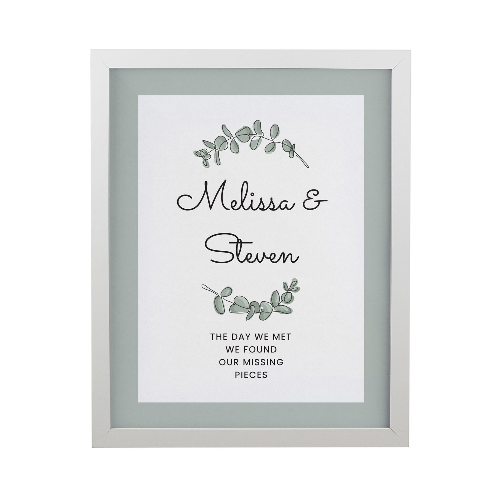 Personalised Any Message Botanical Design Couples White Framed Poster