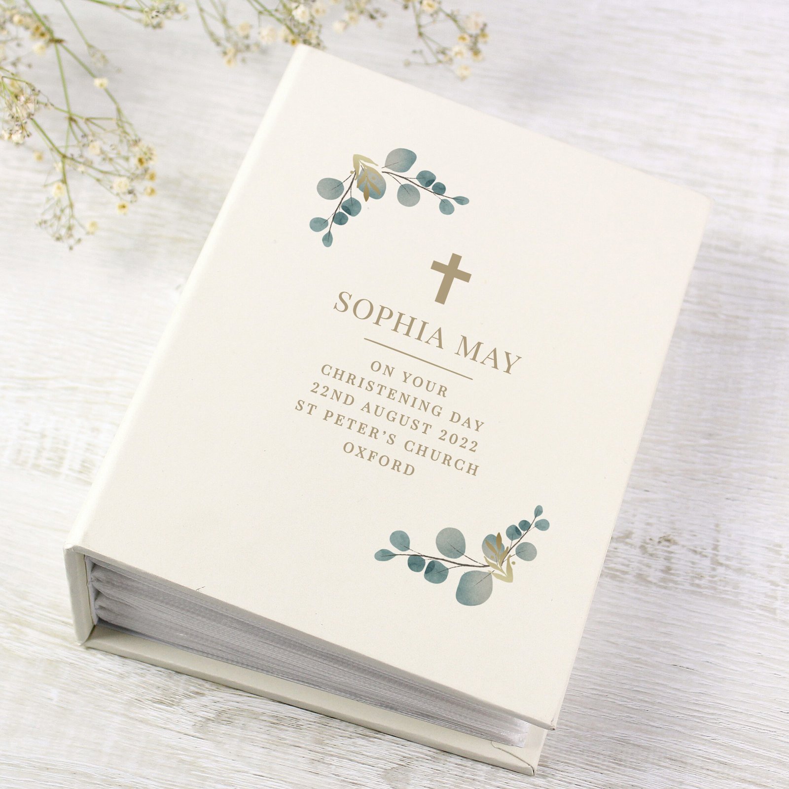 Celebrate life’s meaningful moments with this elegant botanical cross photo album. Perfect for preserving precious memories from Christenings, Holy Communions, Baptisms, or other religious milestones, this keepsake makes a thoughtful gift or treasured family heirloom.