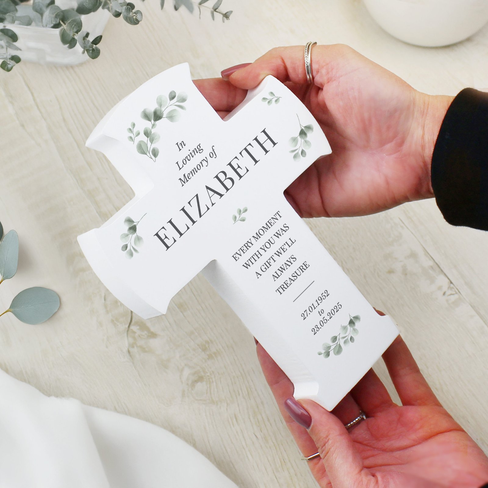 Personalised Any Message Botanical Design Memorial Wooden Cross Ornament