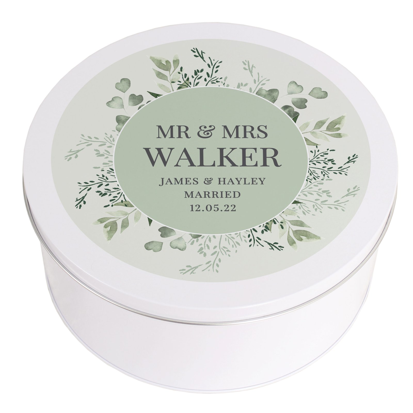 Personalised Any Message Botanical Design Round Cake Tin
