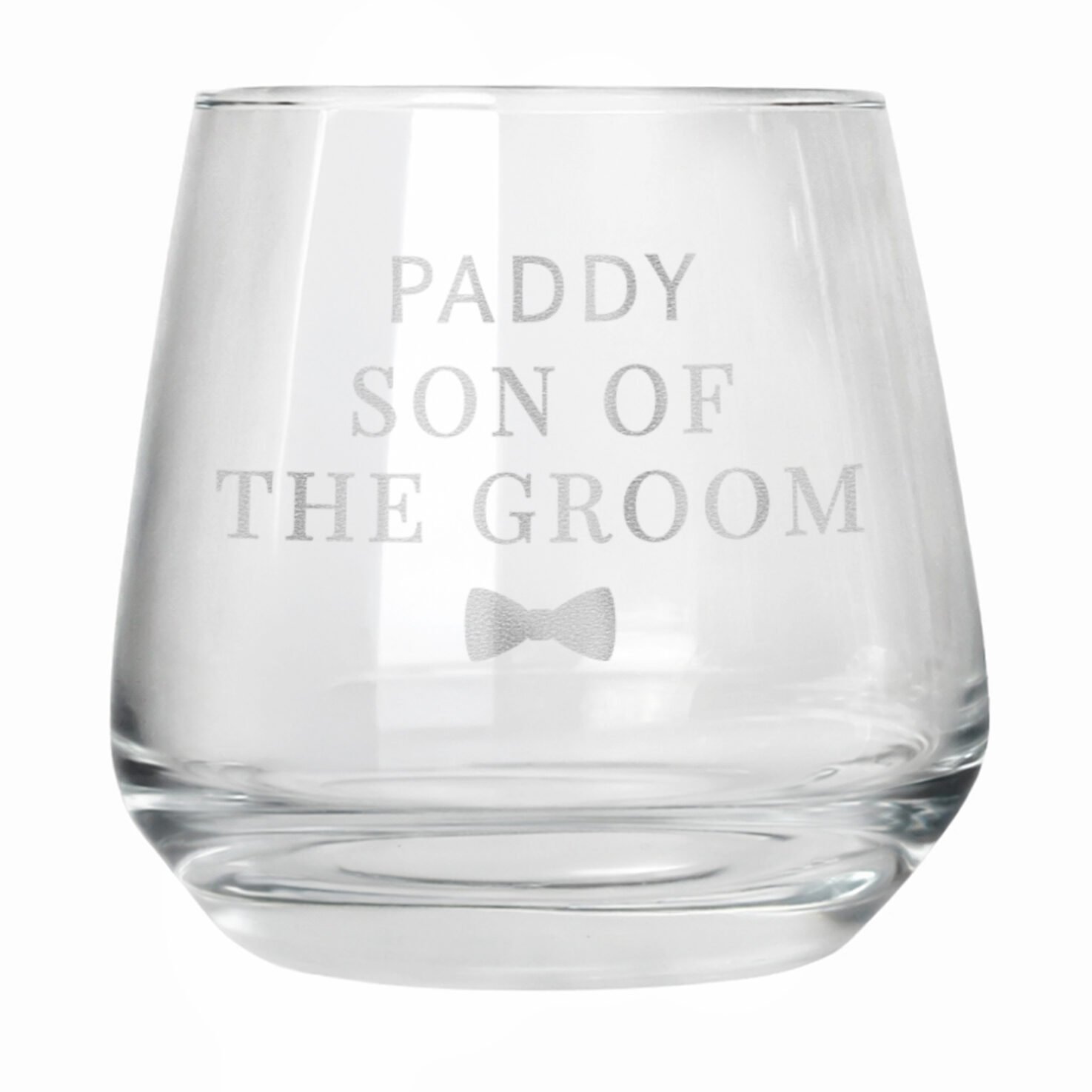 Celebrate in style with our Personalised Bow Tie Motif Wedding Glass Tumbler. Perfect for weddings or stag dos, this elegant glass features a subtle bow tie design and can be personalised with a name or message, making it a thoughtful keepsake for the special day.