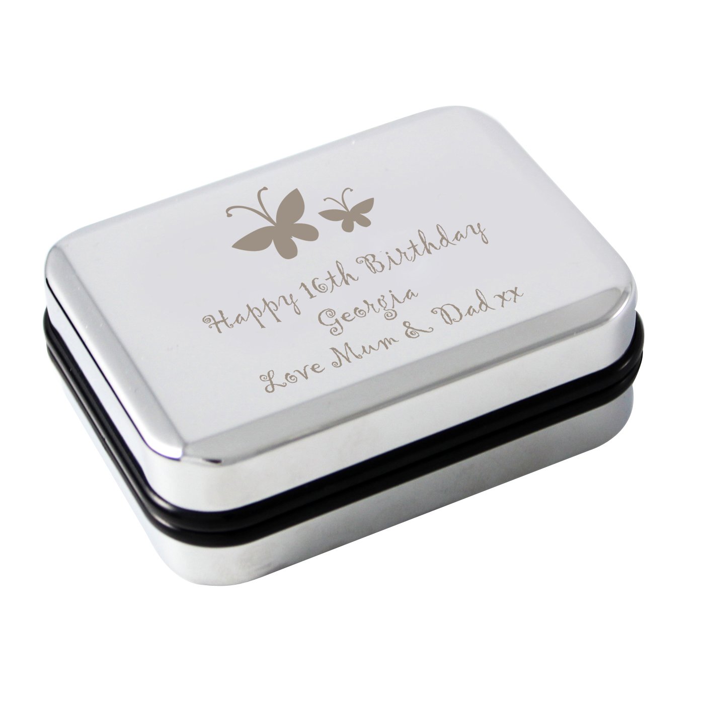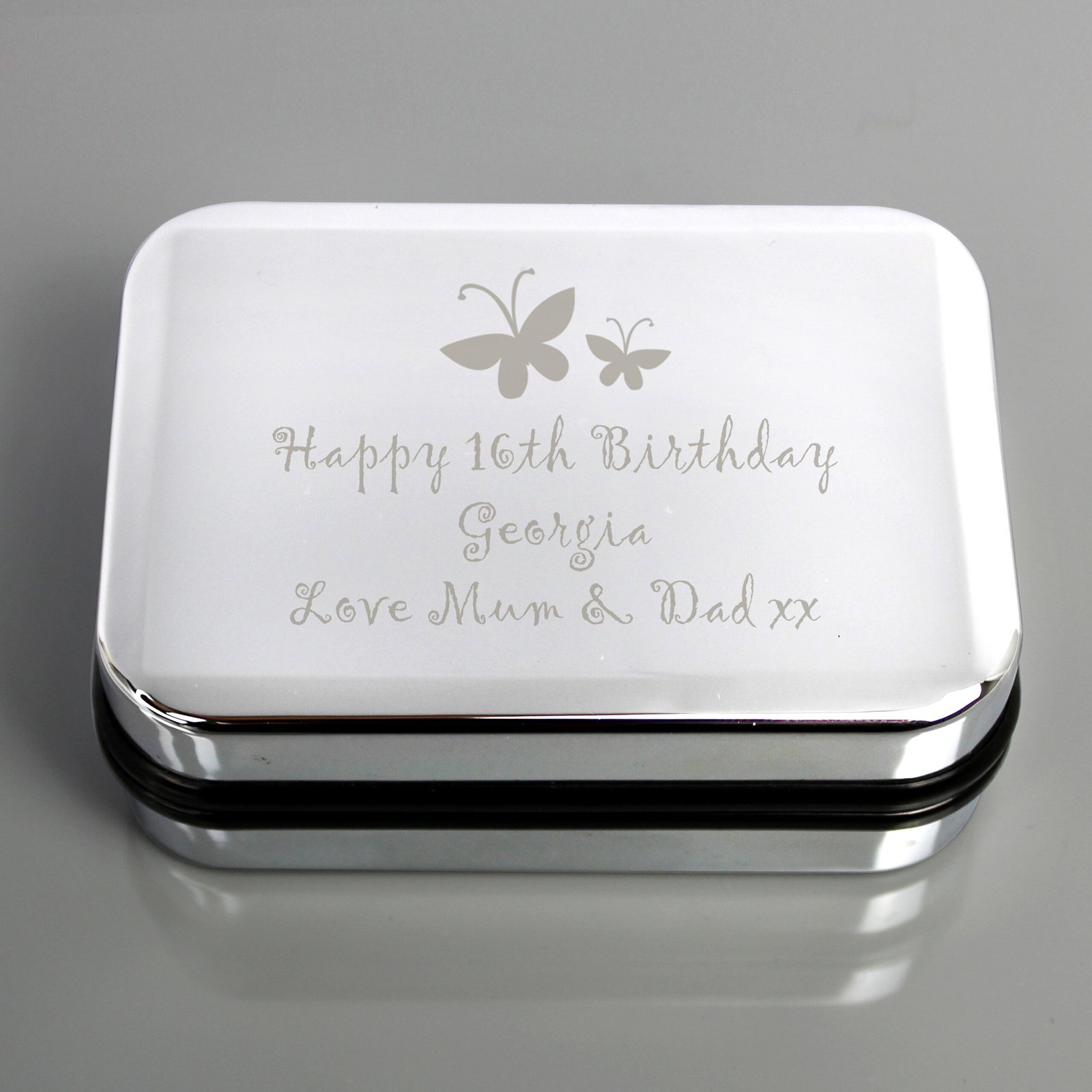 Personalised Any Message Butterflies Motif Chrome Plated Gift Box