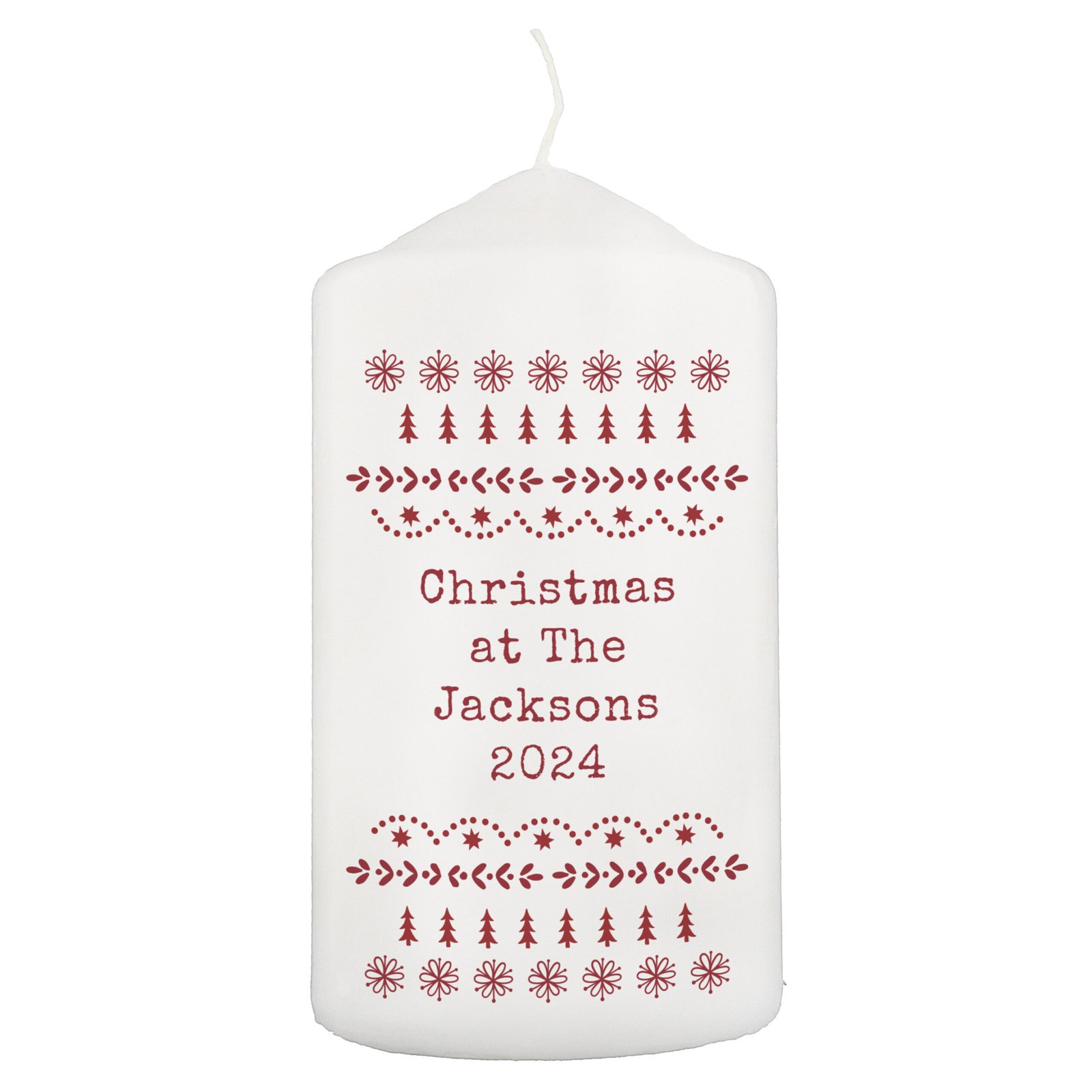 Personalised Any Message Christmas Fair Isle Design Pillar Candle