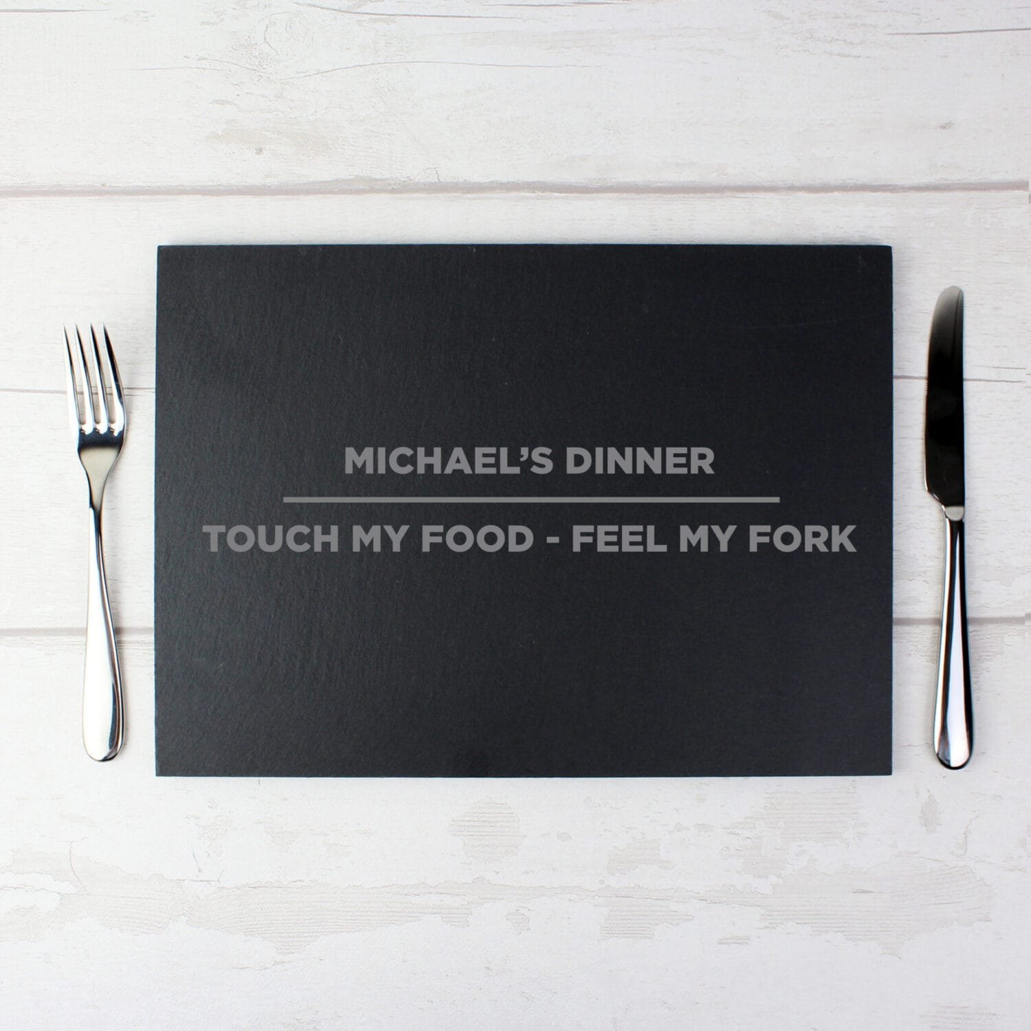 Chic, functional, and personal – this slate placemat is the perfect finishing touch for any stylish table setting.