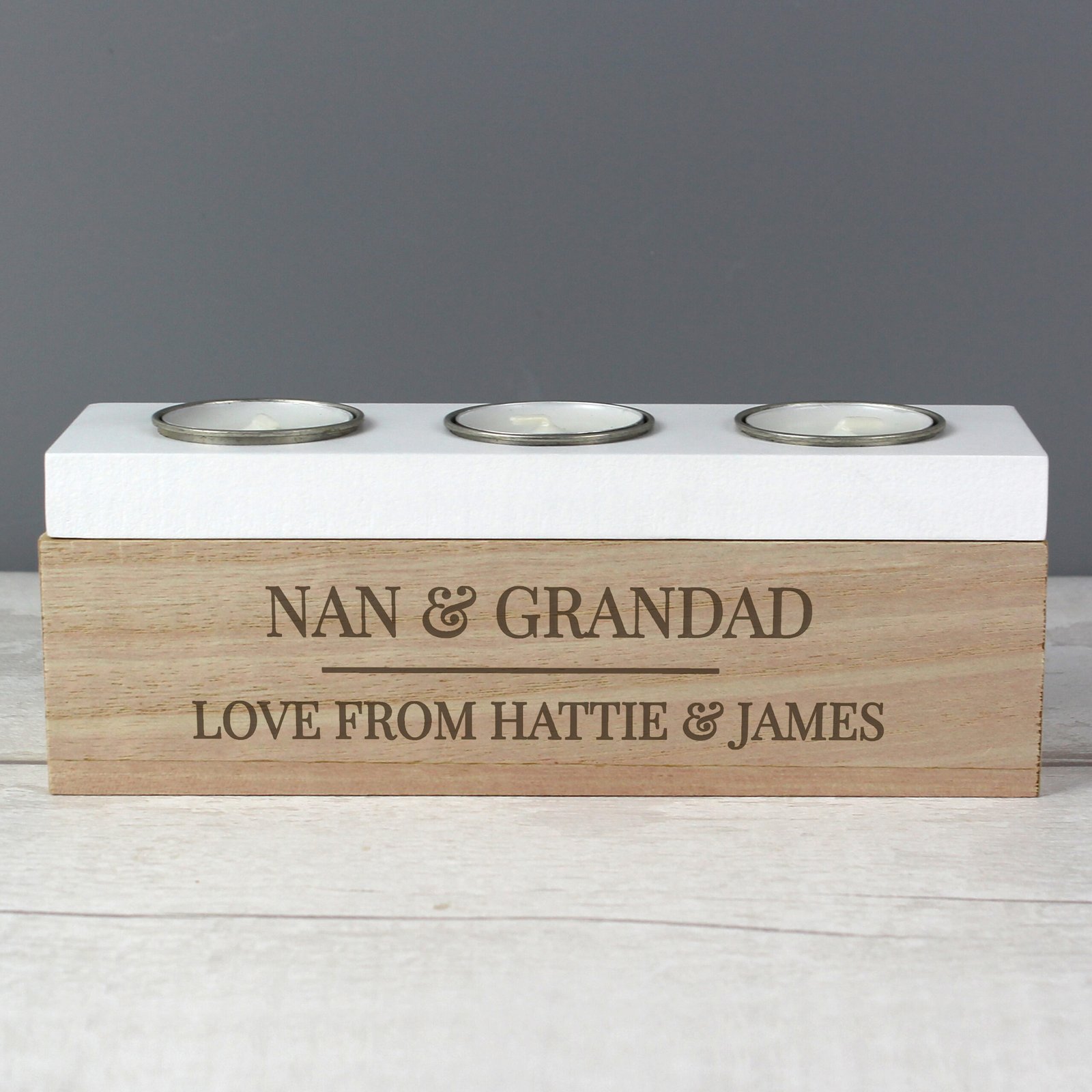 Personalised Any Message Classic Wooden Triple Tea Light Candle Box