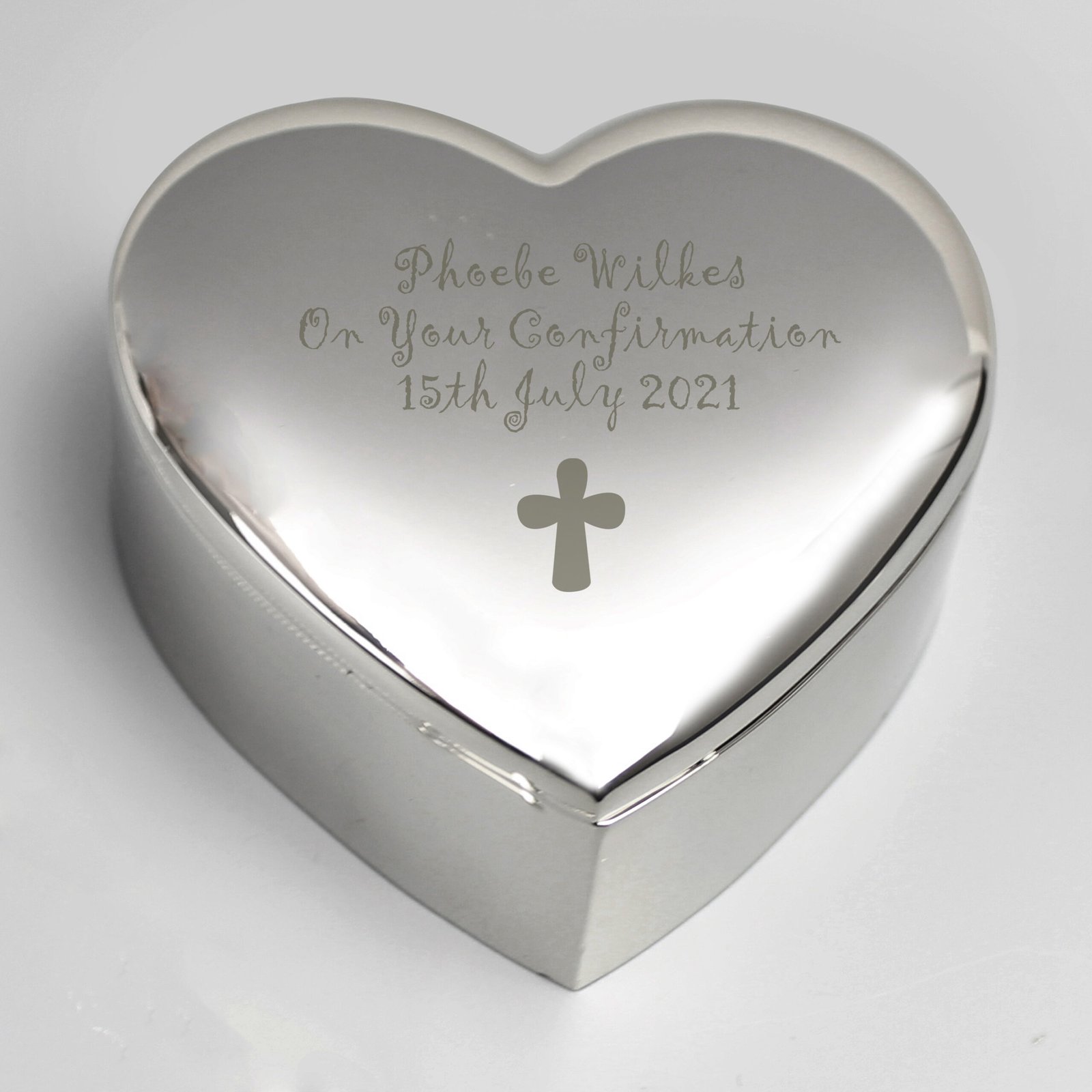 A beautiful and meaningful keepsake, this Cross Motif Heart Shaped Trinket Box is the perfect gift for commemorating special religious occasions or treasuring cherished memories. Elegantly crafted with a high-shine finish and delicate cross design, it’s made even more special with your personalised message.