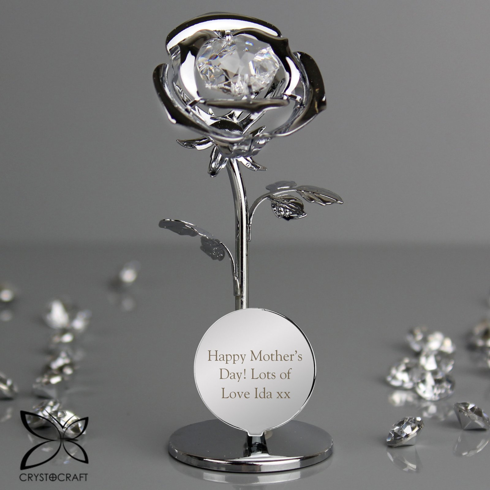 Personalised Any Message Crystocraft Silver Plated Rose Ornament