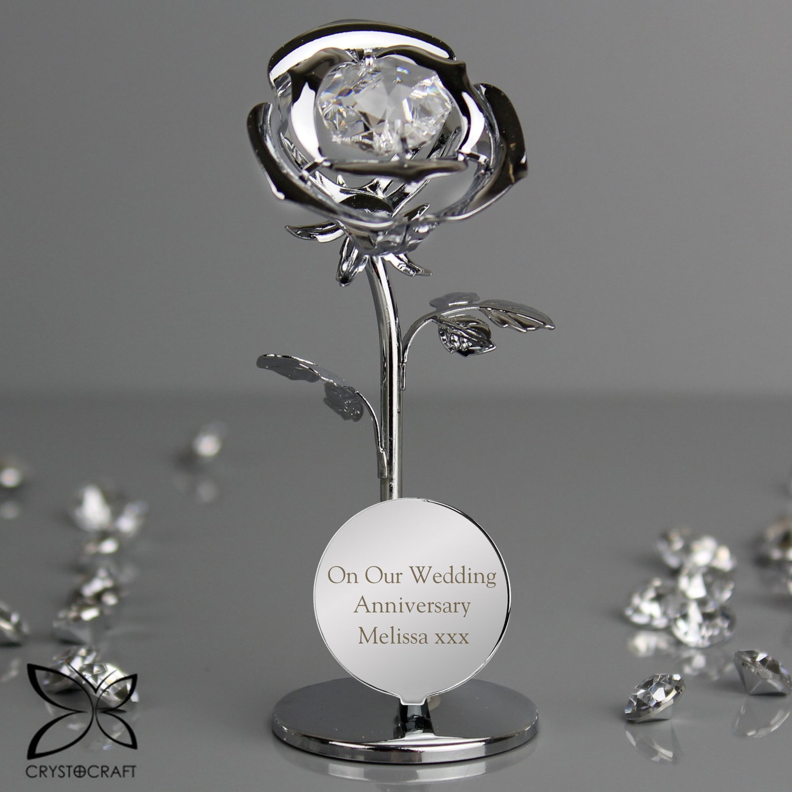 Show your appreciation or remember a loved one with this elegant, personalised silver-plated rose — a keepsake that lasts forever.