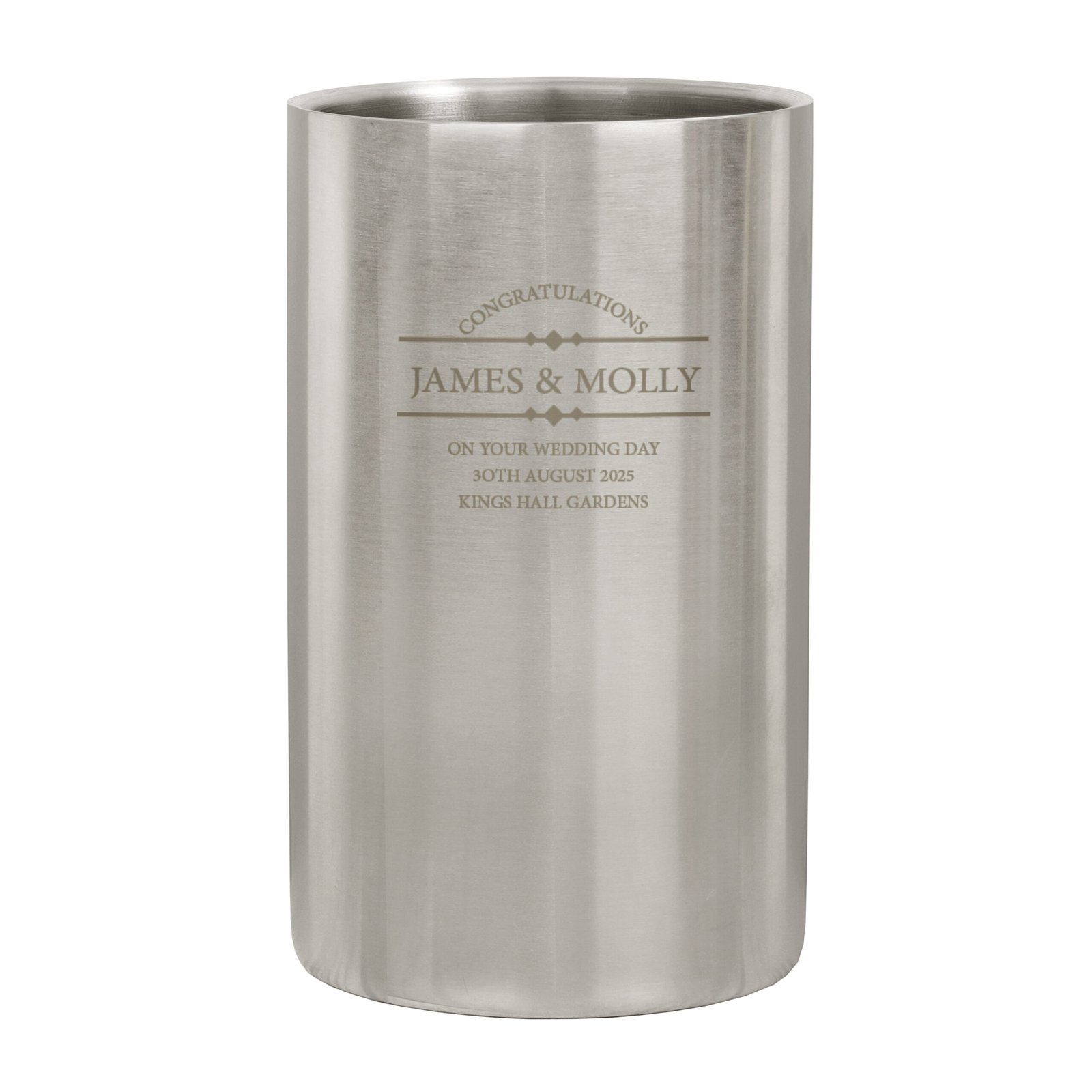 Celebrate in style and keep the wine flowing with this beautifully personalised stainless steel wine cooler—where sophistication meets sentiment.