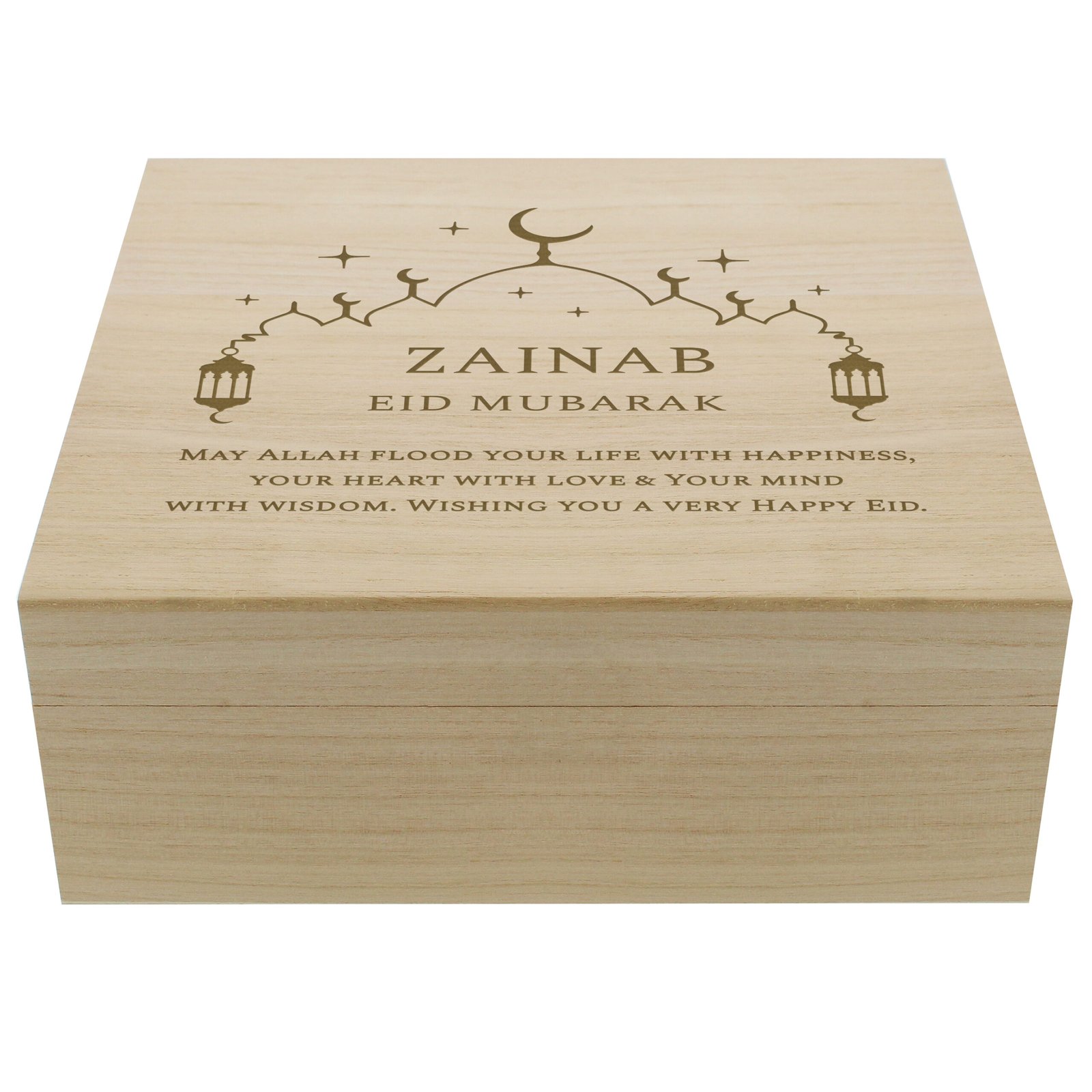 Personalised Any Message Eid & Ramadan Large Wooden Keepsake Box