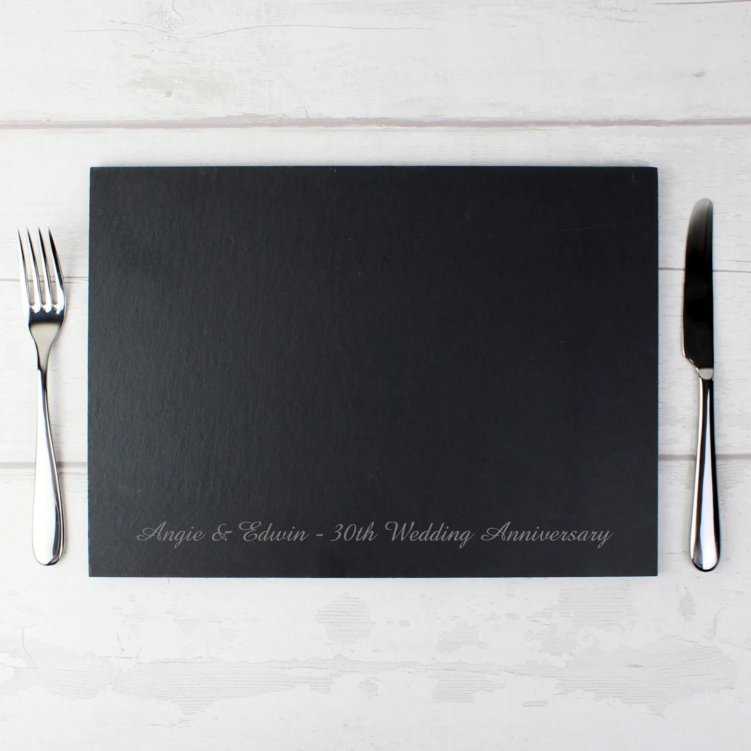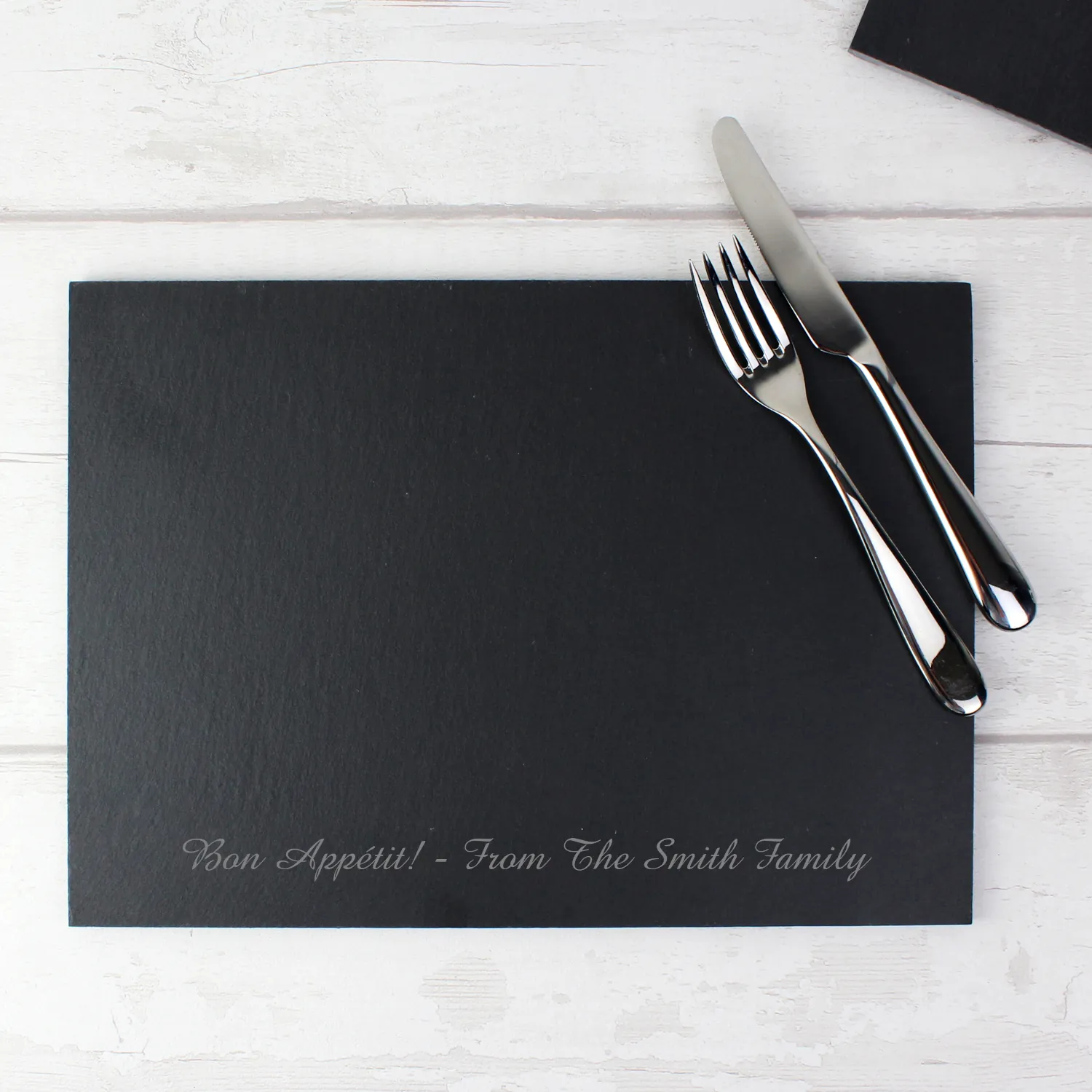 Add a rustic, personal touch to your table setting with this Personalised Engraved Slate Placemat. Beautifully handcrafted and engraved in an elegant script font, this versatile piece is perfect as a placemat, cheeseboard, or decorative serving tray.