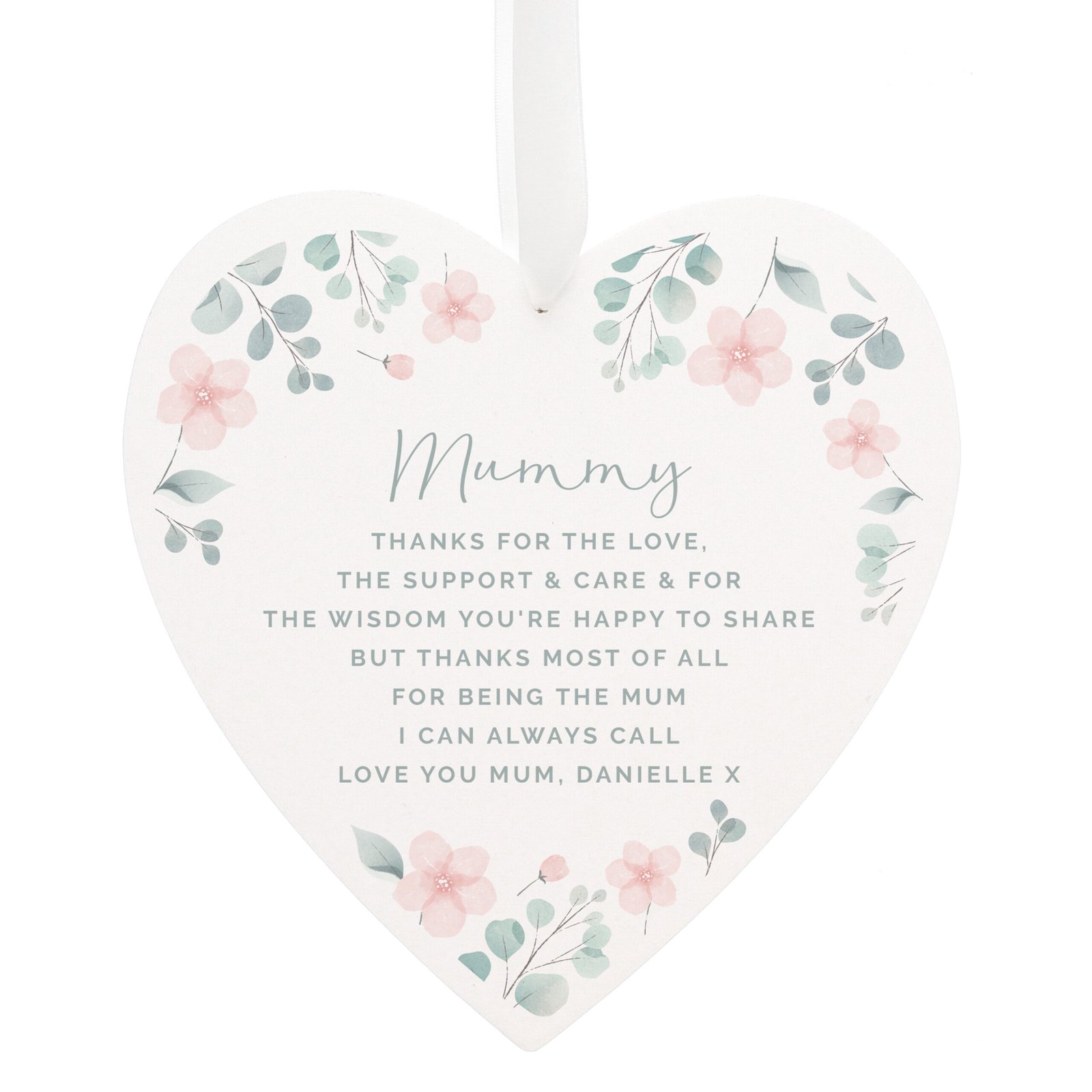Personalised Any Message Floral Design Wooden Heart Shaped Decoration