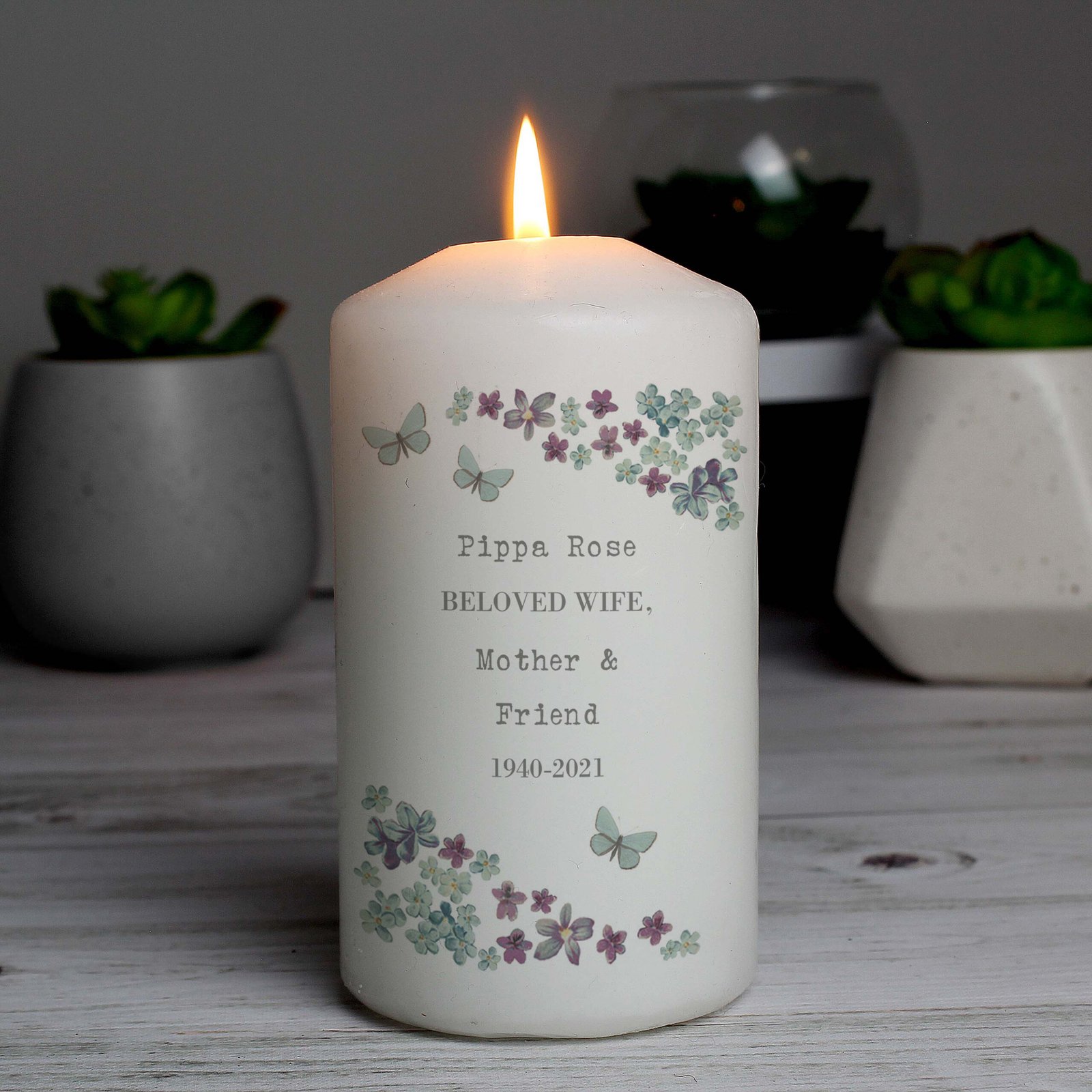 Personalised Any Message Forget Me Not Design Pillar Candle