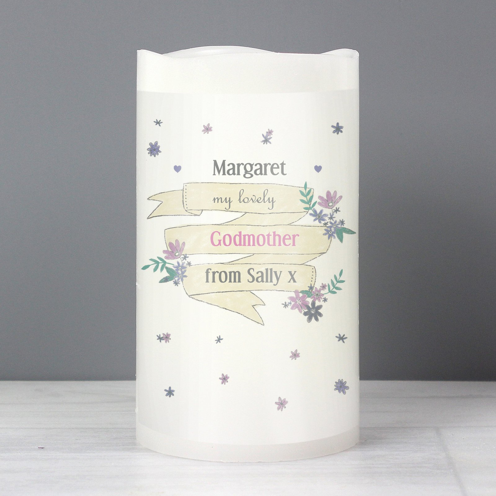 Personalised Any Message Me to You Floral Design LED Pillar Candle