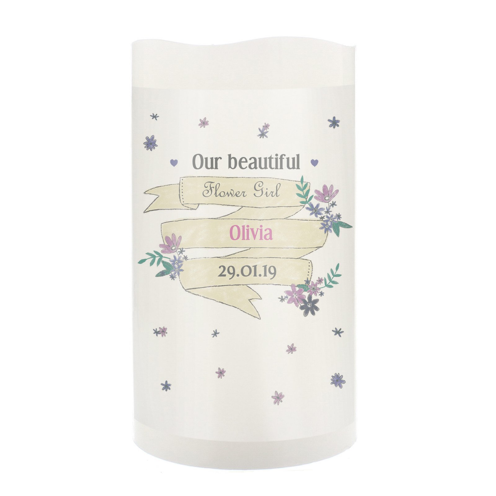 Personalised Any Message Garden Bloom Design LED Pillar Candle