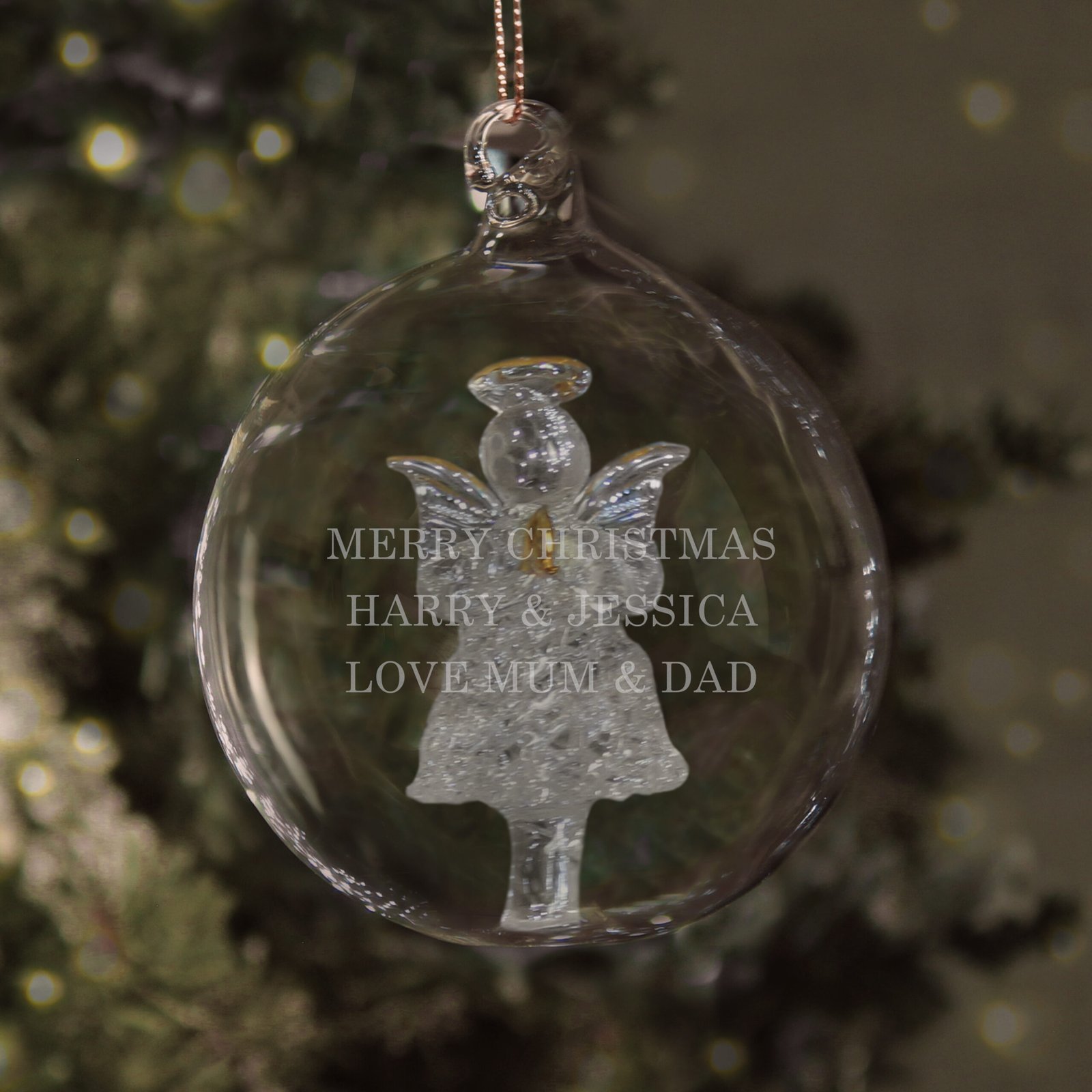 Bring a touch of elegance and heartfelt sentiment to your festive décor with this Personalised Glass Christmas Angel Bauble. Featuring a delicate glass angel suspended inside a clear bauble, this exquisite ornament is perfect for remembering loved ones or celebrating the magic of Christmas with a personal message. A timeless keepsake to treasure year after year.