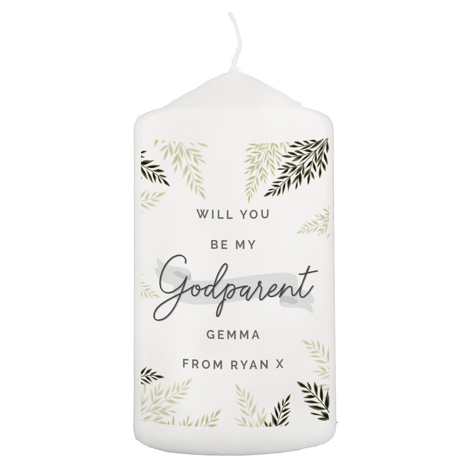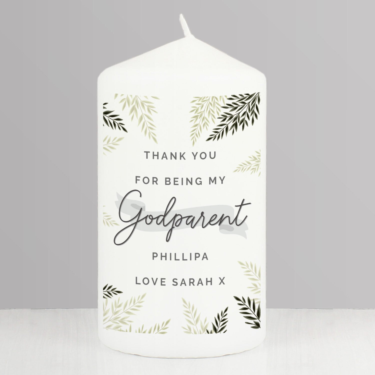 Personalised Any Message ‘Godparent’ Leaves Design Pillar Candle