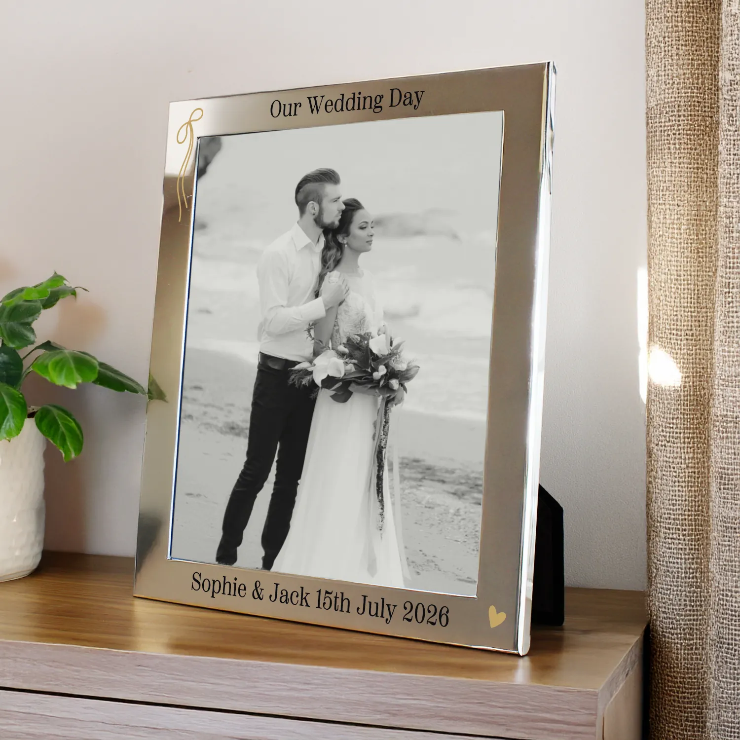 - Elegant Gold Bow & Heart Motif: A beautiful decorative design that adds a romantic and sophisticated touch to the silver frame.
