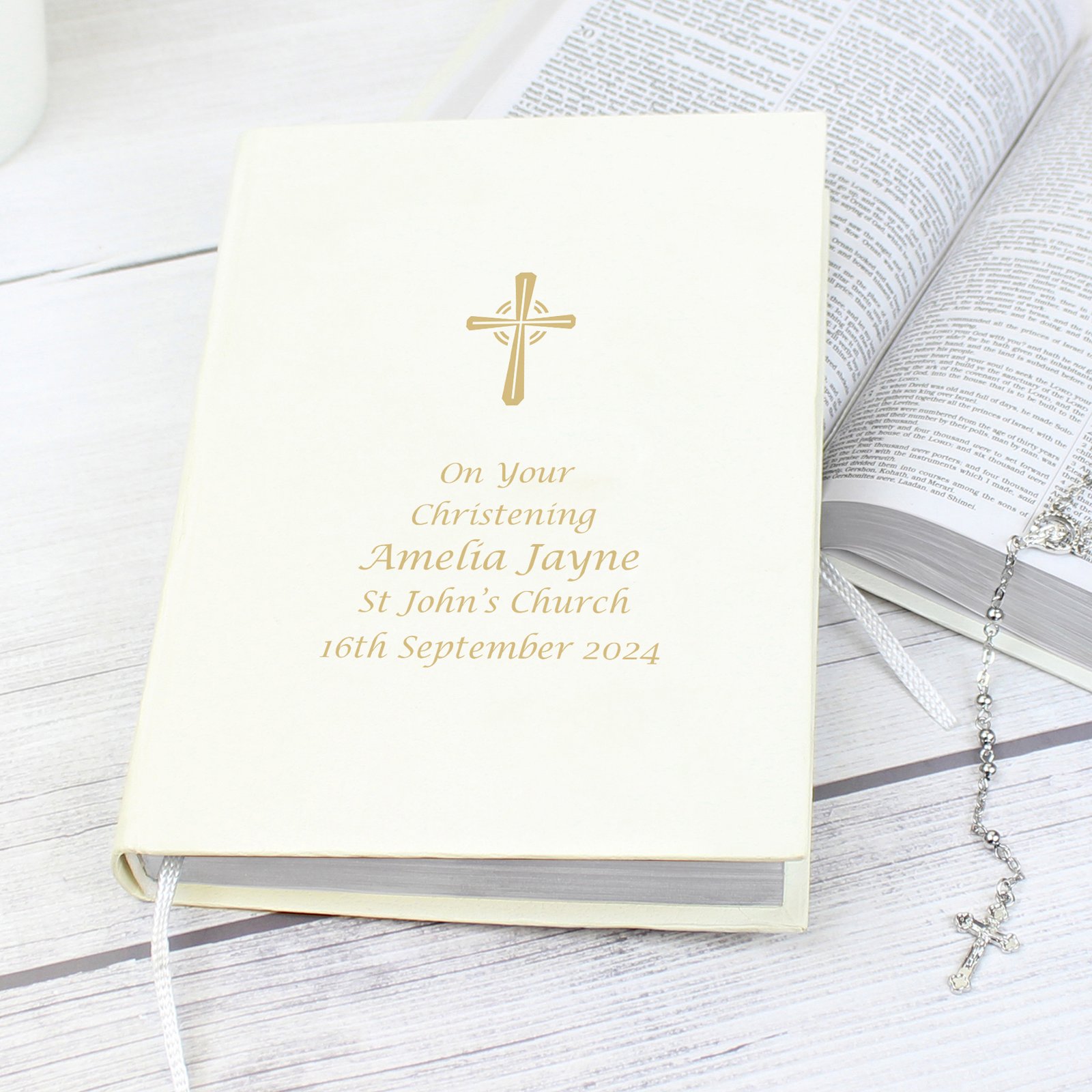 Personalised Any Message Gold Cross Motif Eco-Friendly Holy Bible