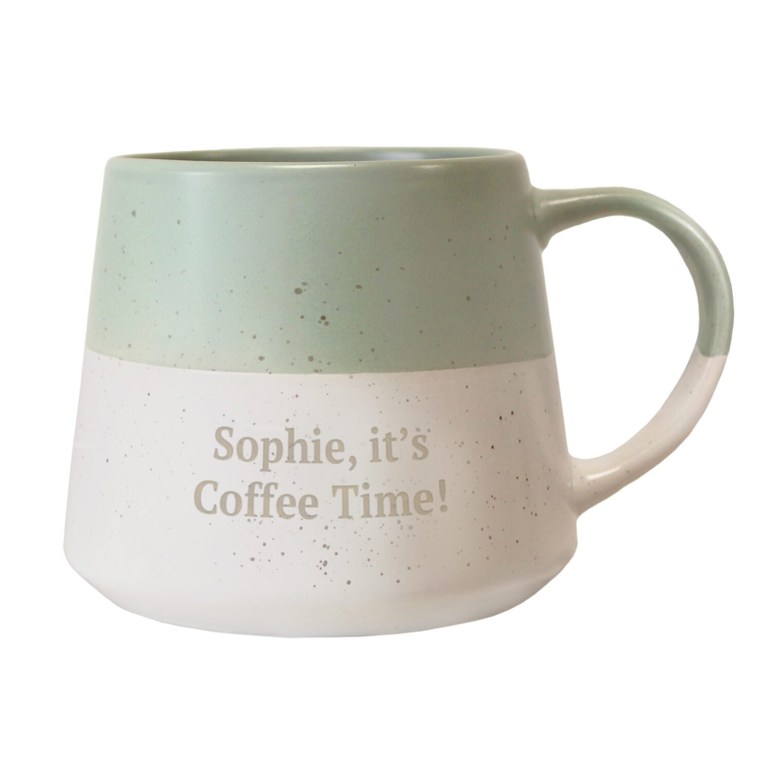 Add a touch of personality to every cuppa with this beautifully personalised green & white speckled mug — a thoughtful keepsake that’s sure to make them smile with every sip!