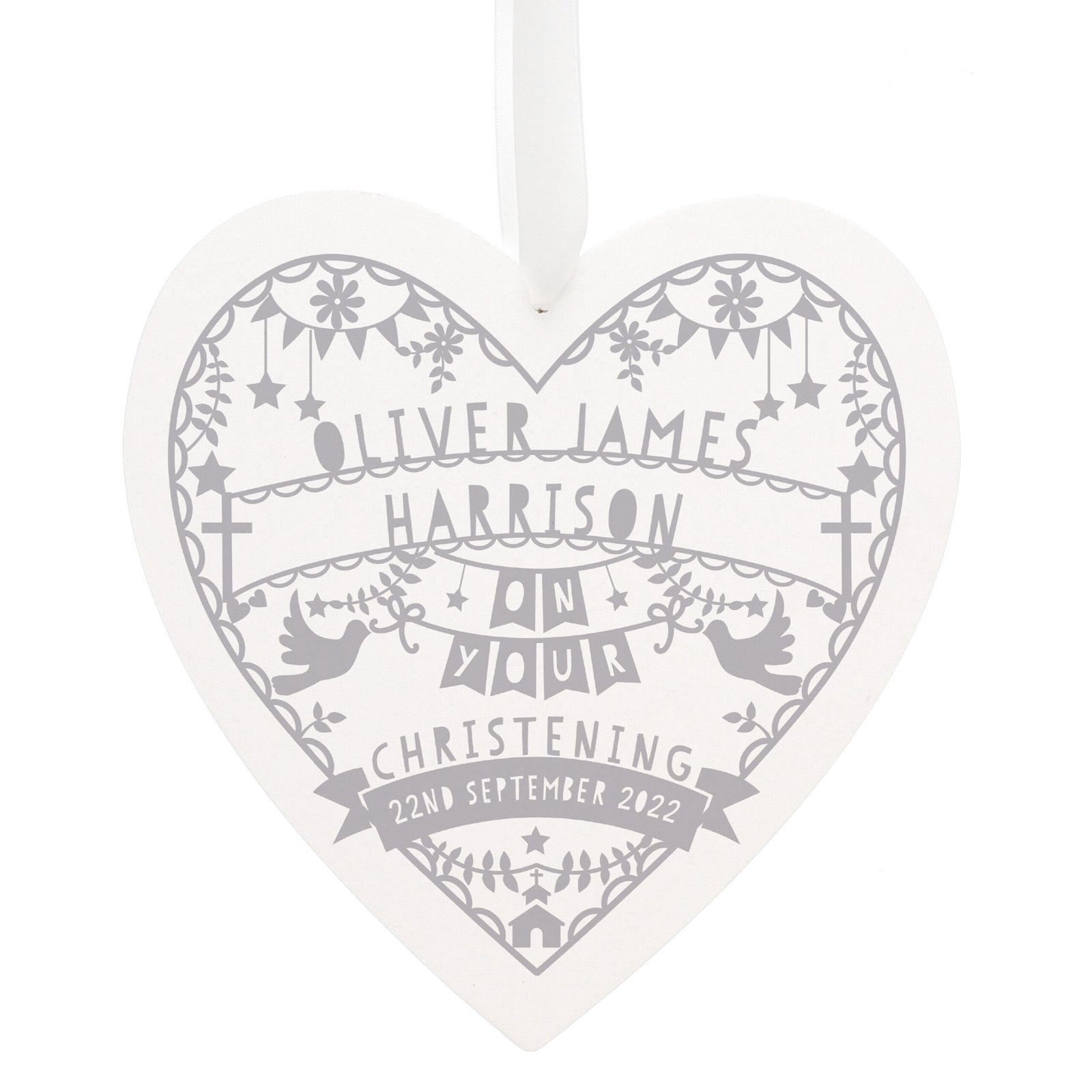 Celebrate life’s special moments with this elegant Grey Papercut Large Wooden Heart, a perfect commemorative gift for religious occasions, milestones, or heartfelt celebrations. Its delicate design and personalisation option make it a treasured keepsake.