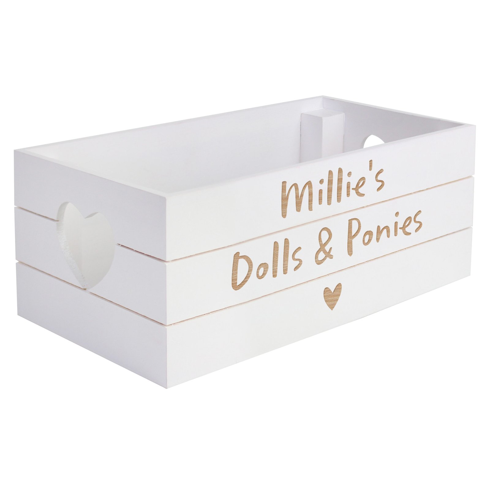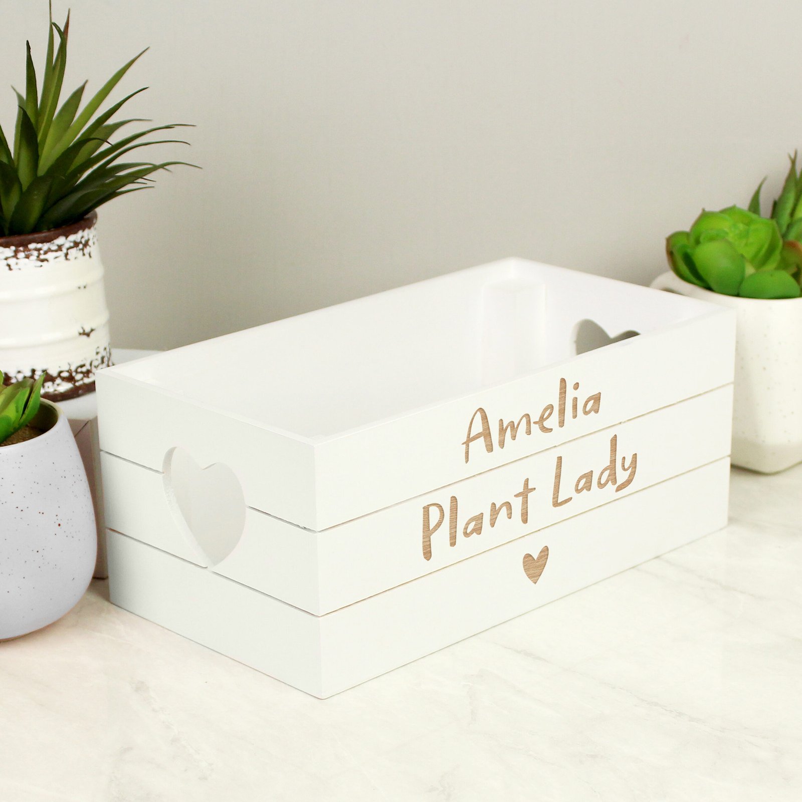 Personalised Any Message Heart Motif Small White Wooden Storage Crate
