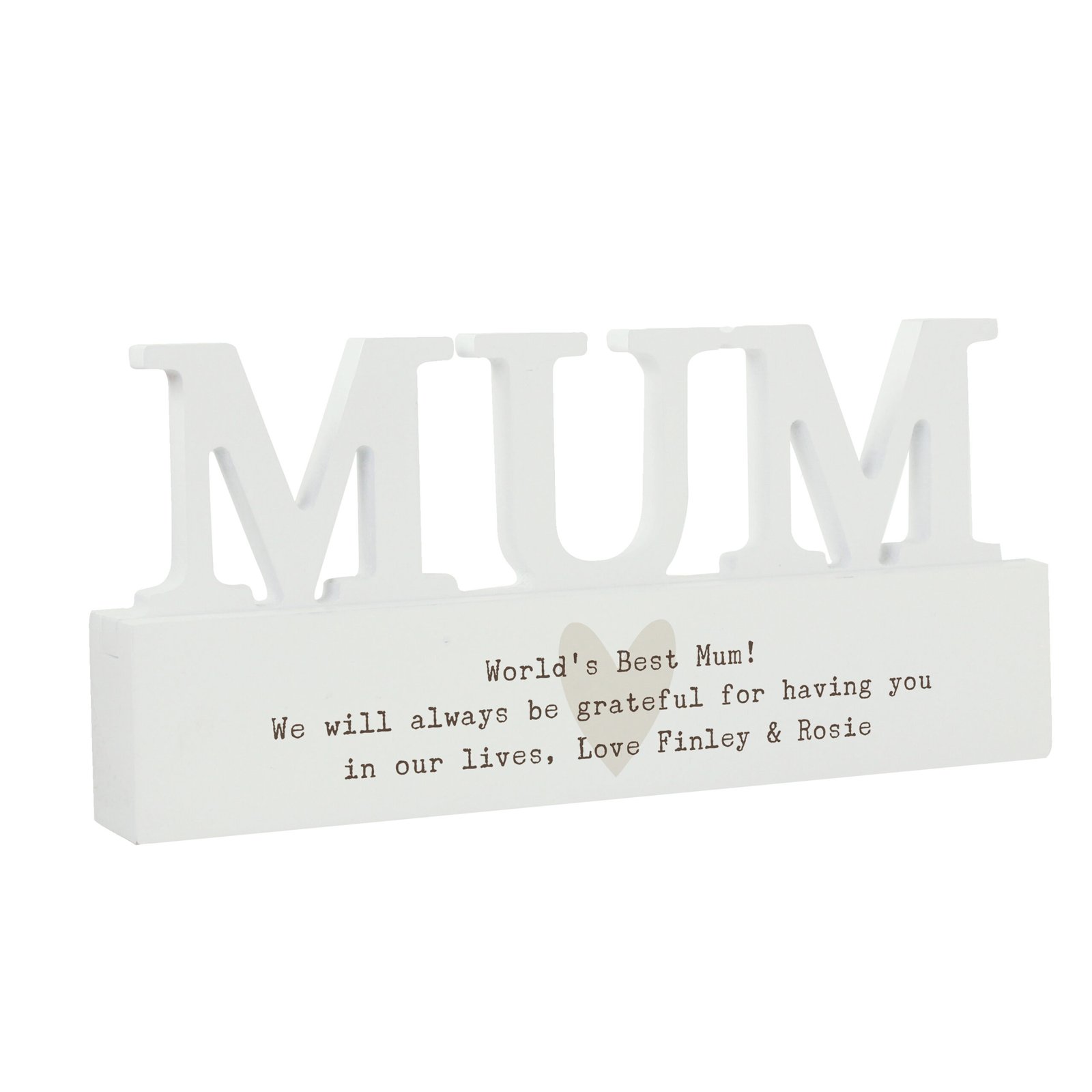 Personalised Any Message Heart Motif Wooden Mum Ornament