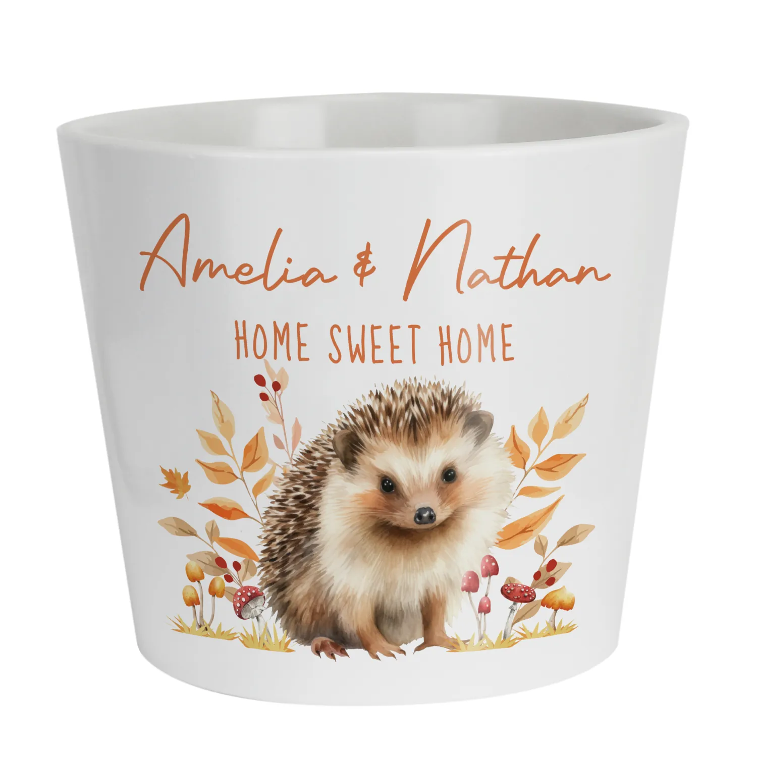 Personalised Any Message Hedgehog Design White Ceramic Indoor Plant Pot