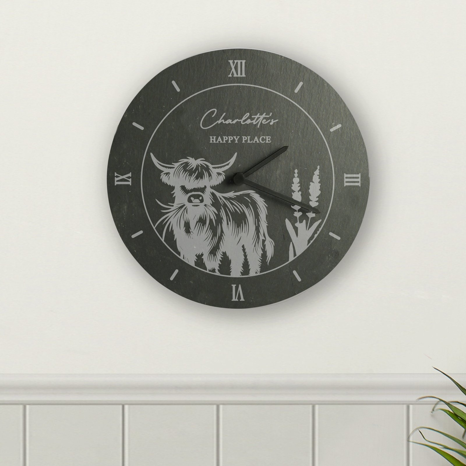 Add timeless charm to your home with our Personalised Highland Cow Slate Wall Clock. Combining rustic elegance with countryside character, this beautiful timepiece makes a thoughtful gift for any occasion — perfect for those who appreciate natural textures and unique home décor.