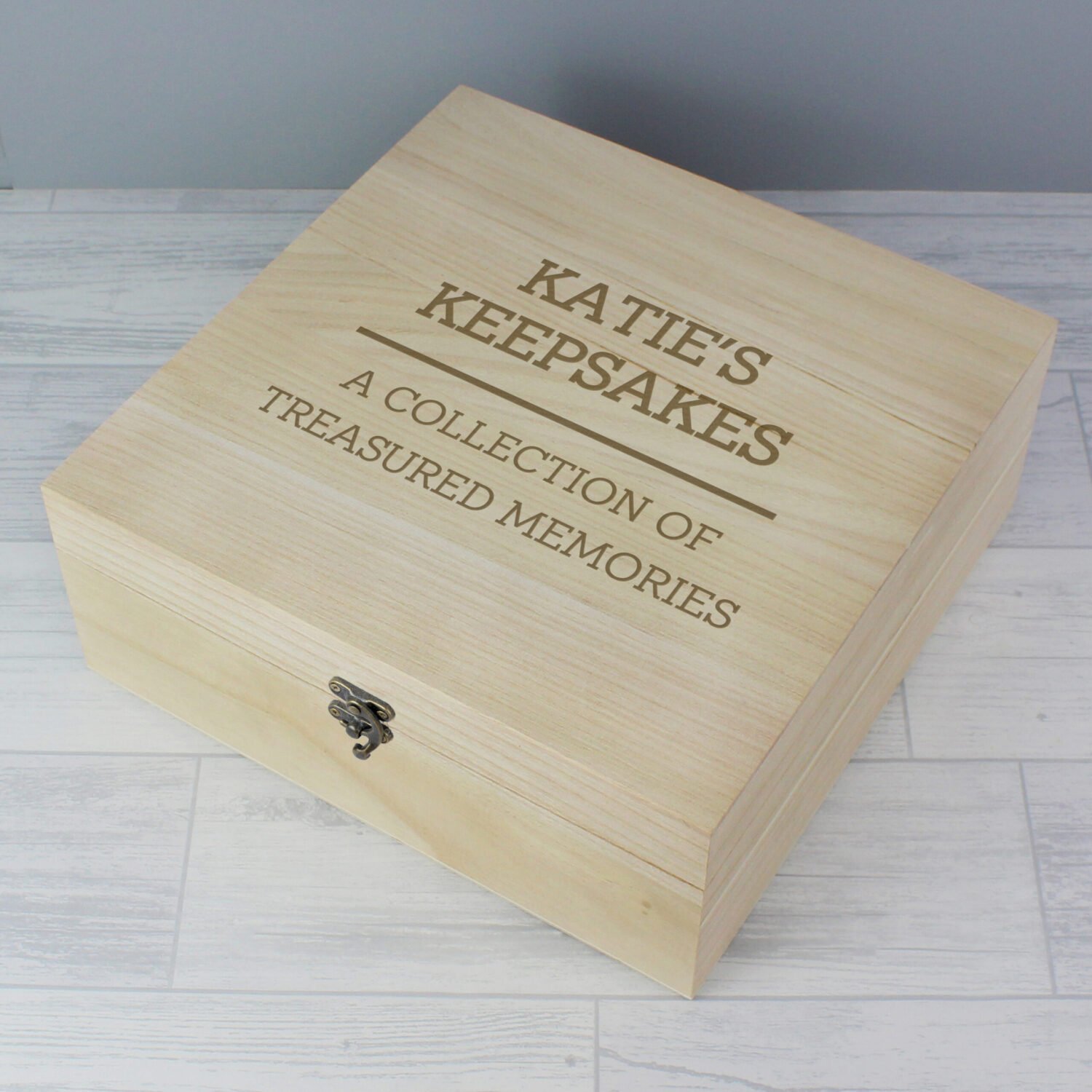 Treasure life’s most meaningful moments with our Personalised Any Message Large Wooden Keepsake Box. Thoughtfully designed and fully customisable, this beautiful box is ideal for storing precious memories, trinkets, and mementoes from life’s special occasions.