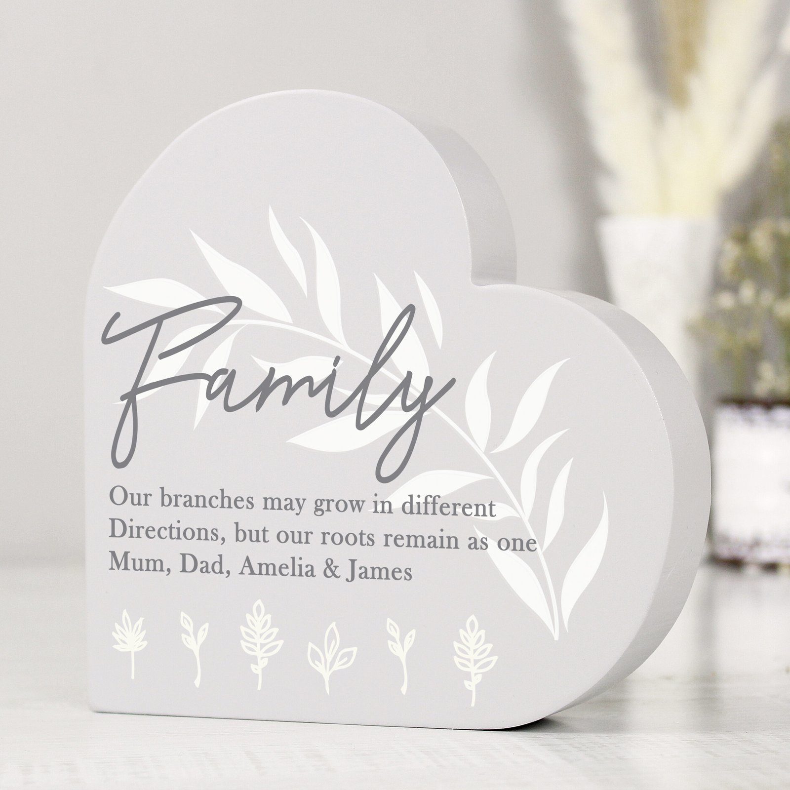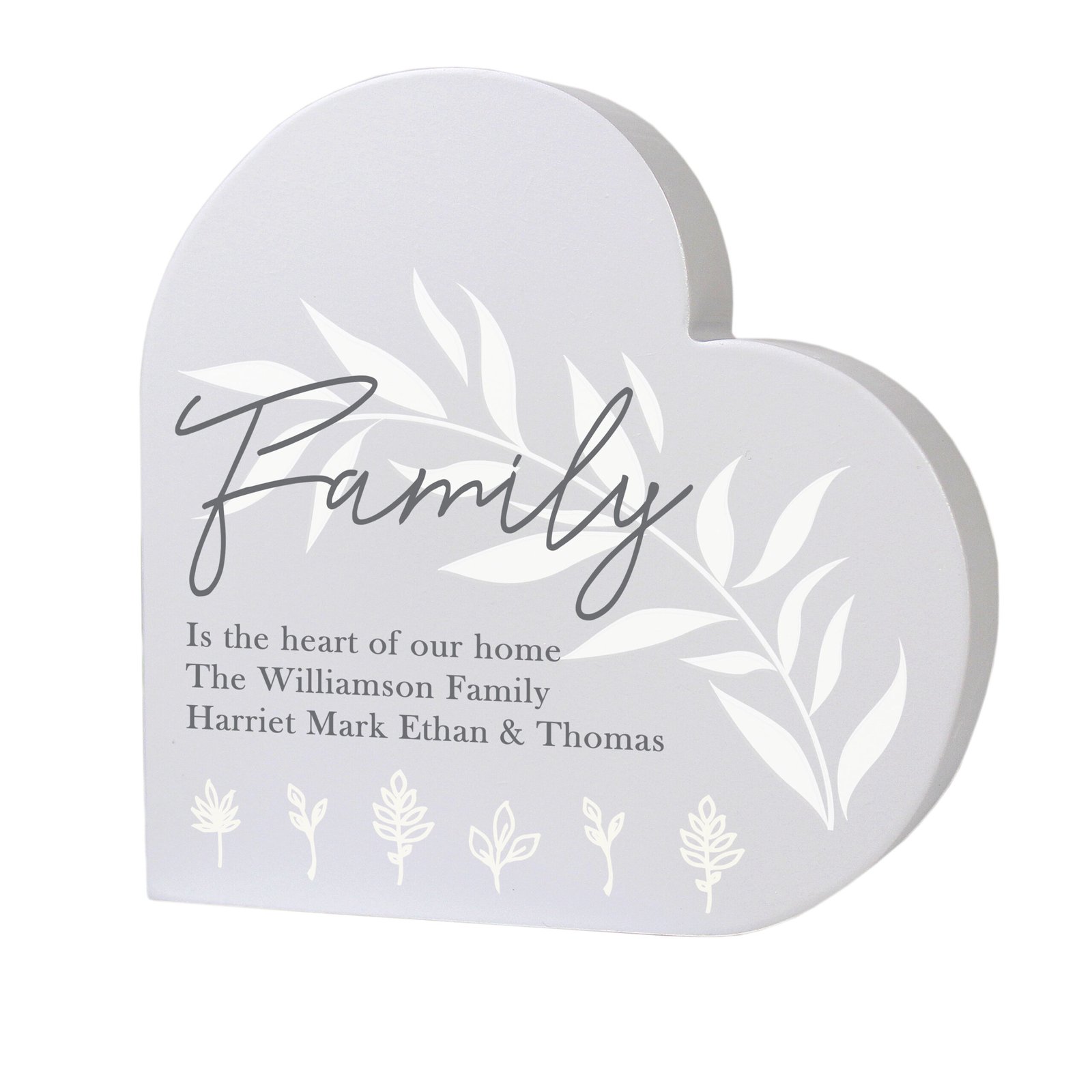 Personalised Any Message Leaf Decor Free Standing Grey Wooden Heart Ornament