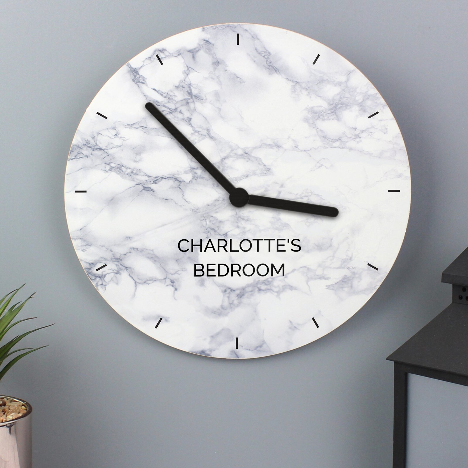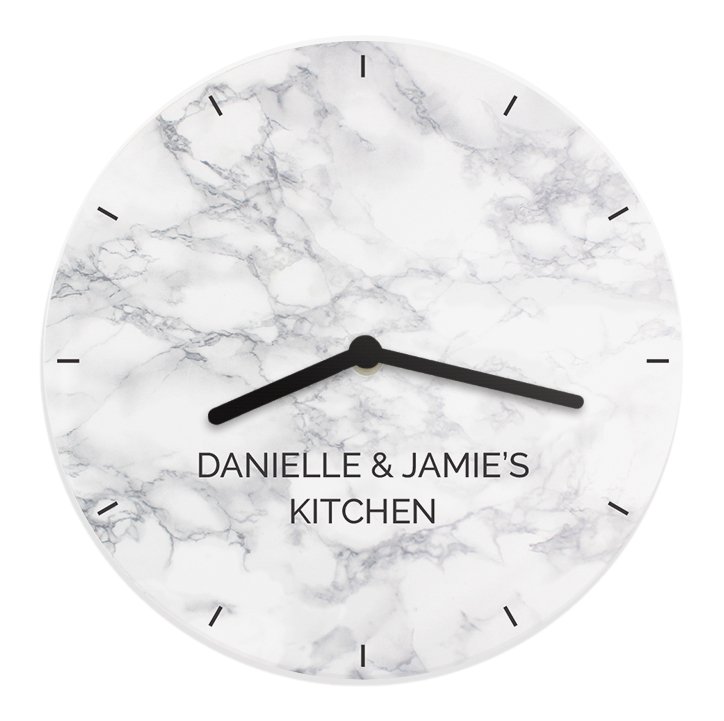 Chic, customisable, and practical – this marble effect wall clock is a beautiful way to add a personal touch to any living space.