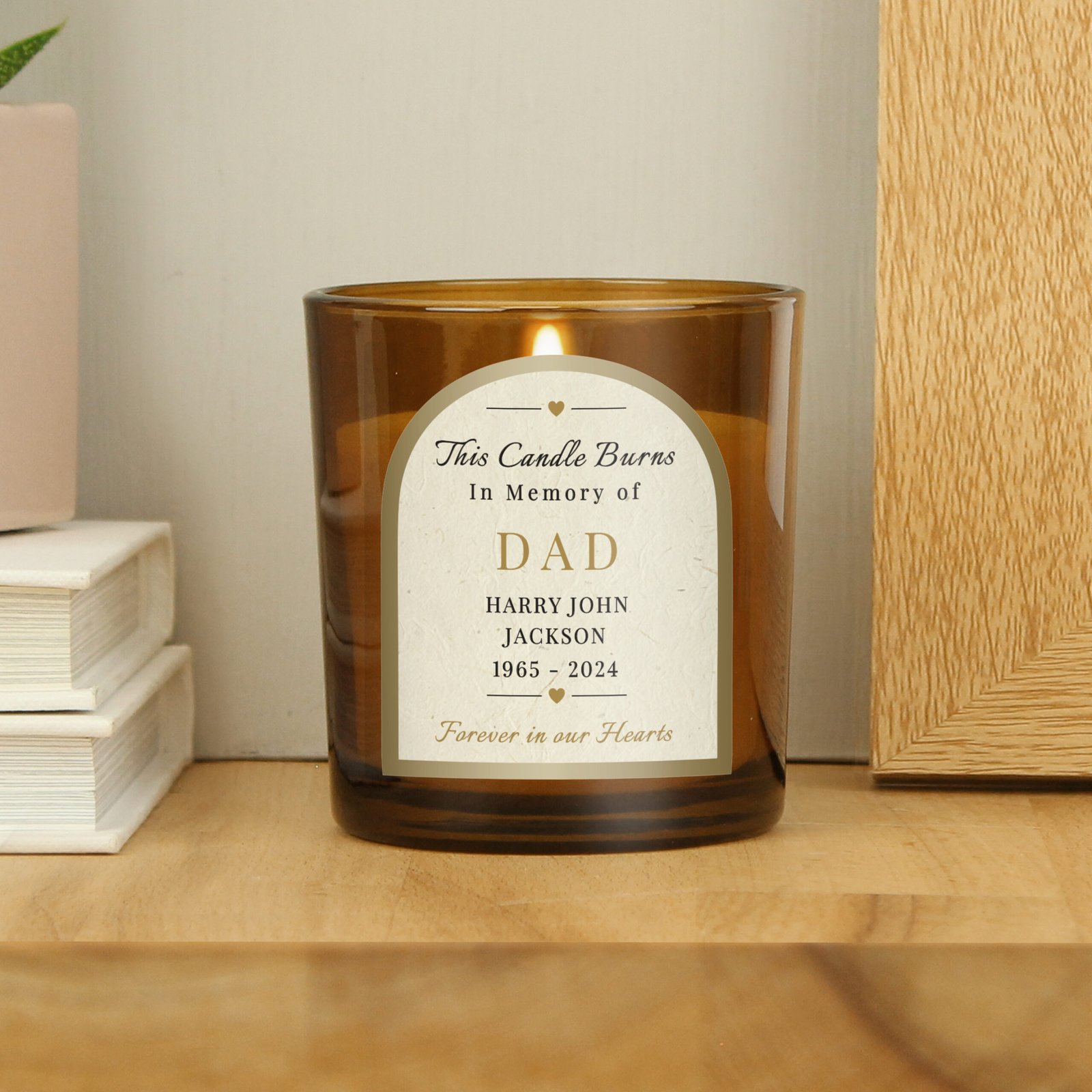 Keep the memory of a loved one alive with the gentle glow of our Personalised Memorial Scented Amber Glass Jar Candle. Beautifully crafted with a timeless amber glass design, this candle offers both comfort and serenity, making it a heartfelt way to honour those who are forever in your heart.