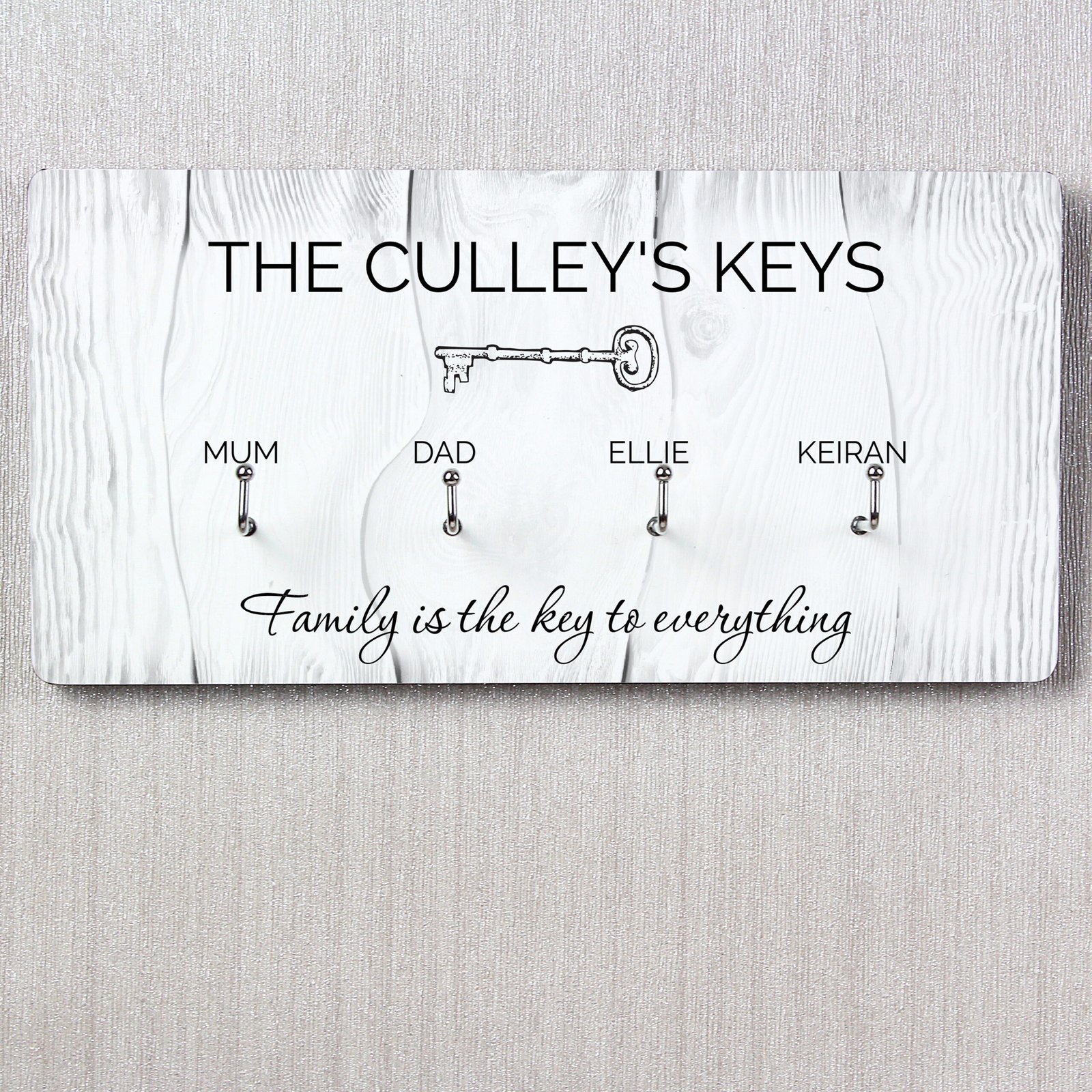 Keep your keys in one stylish, organised place with this charming and fully personalised wooden key holder – a gift that’s both meaningful and practical.