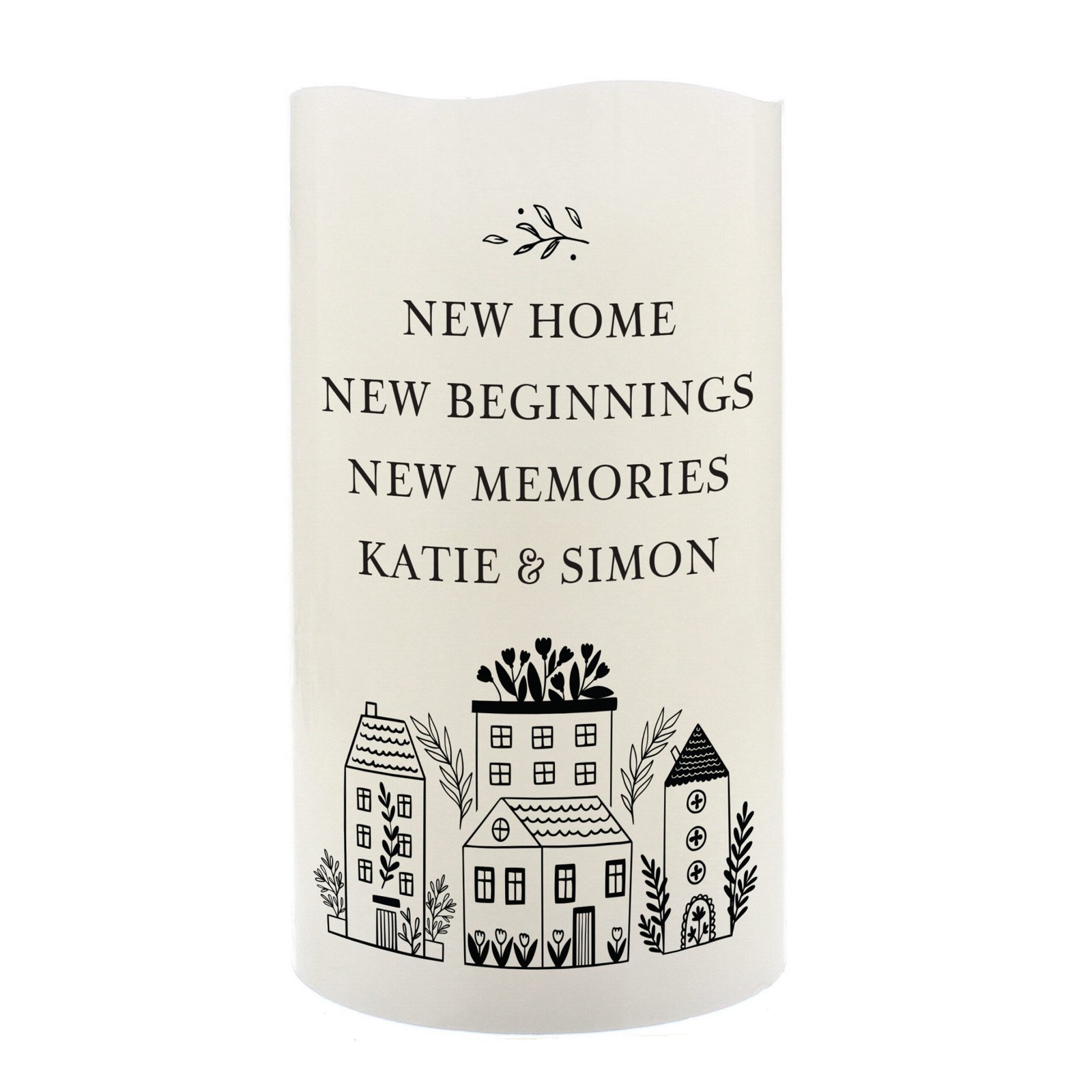 Celebrate a new home or special occasion with this elegant personalised LED pillar candle. Perfect for gifting, this candle combines the warmth of real wax with the convenience of a safe, flameless design. Add a unique touch by personalising it with your own message, making it a truly memorable keepsake.