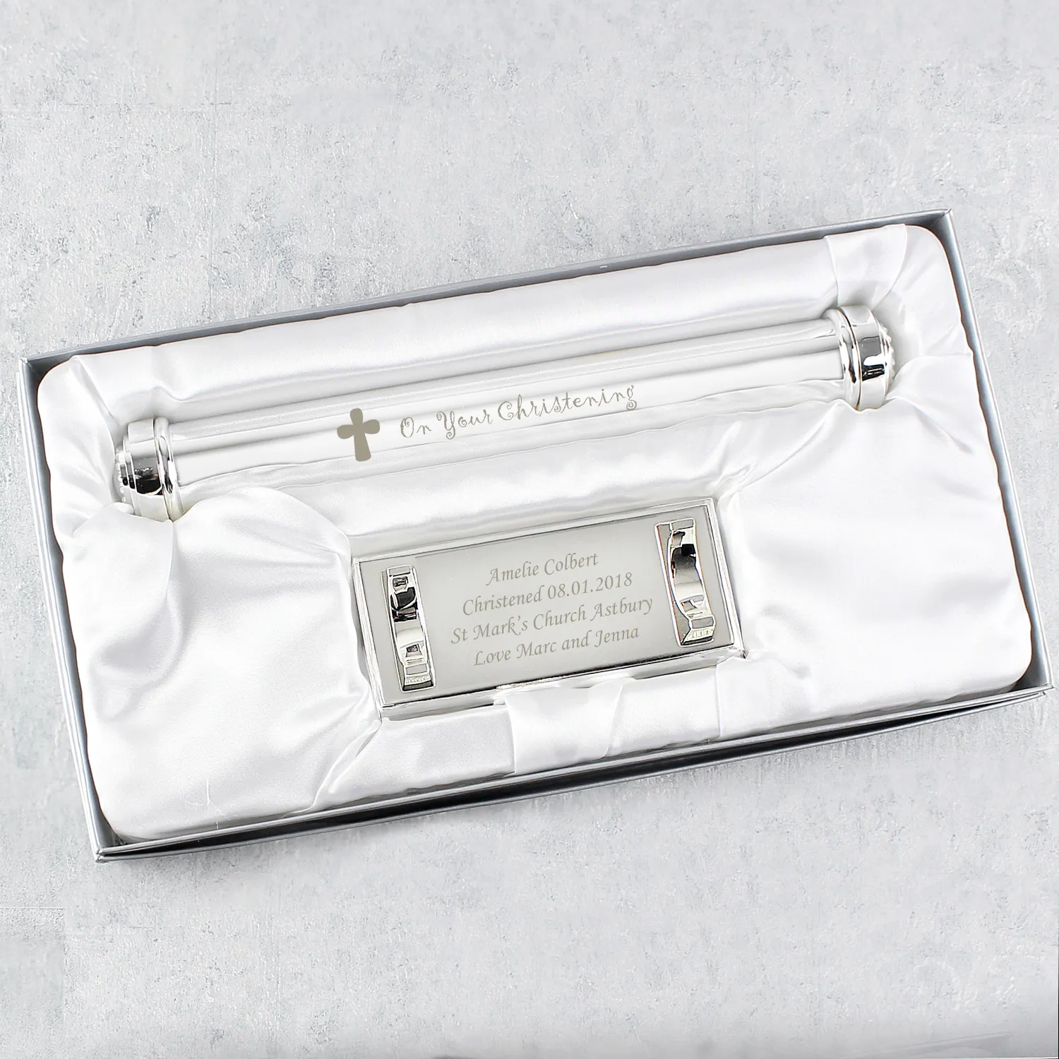 - Fixed Wording Included: The phrase ‘On Your Christening’ is fixed text, professionally engraved on the holder.