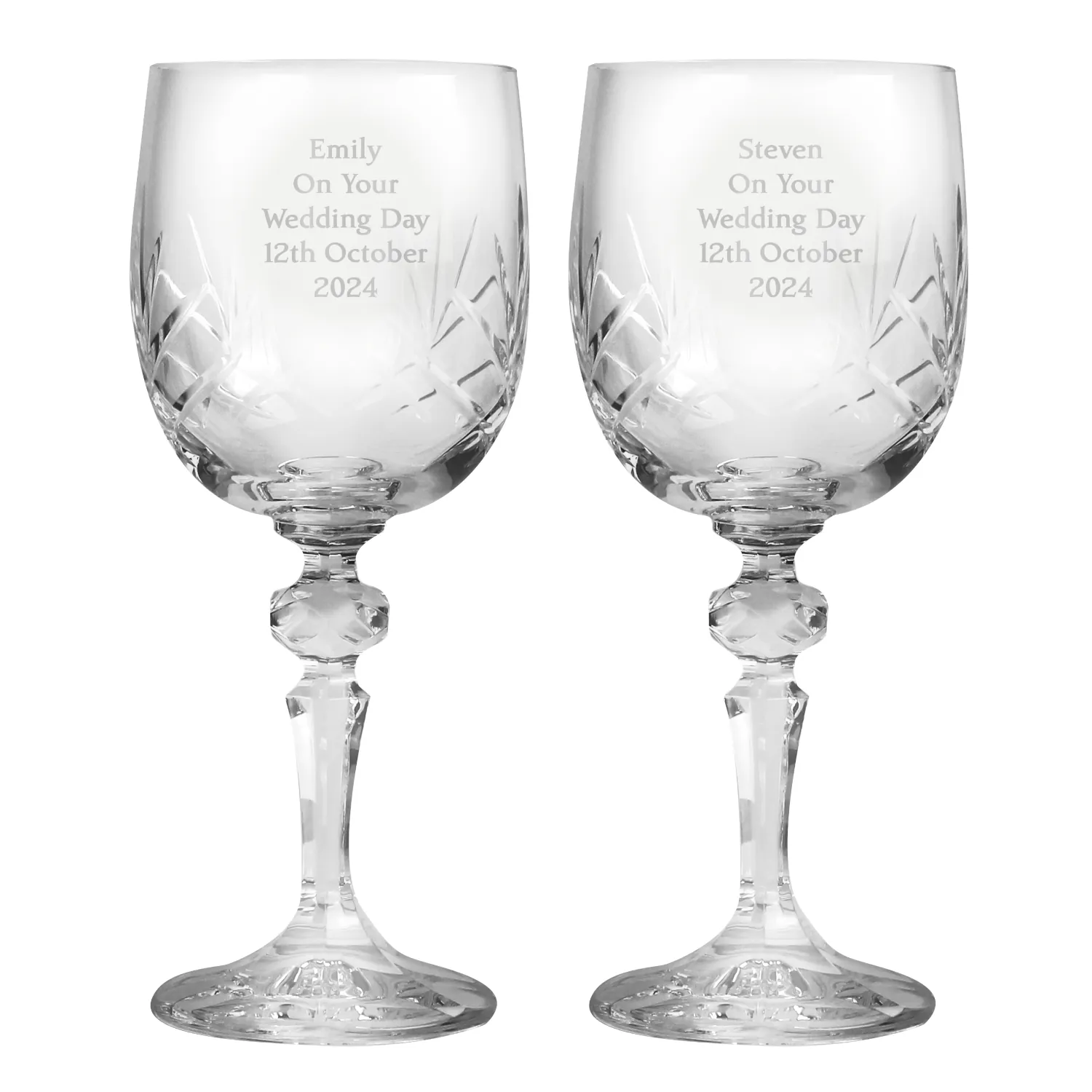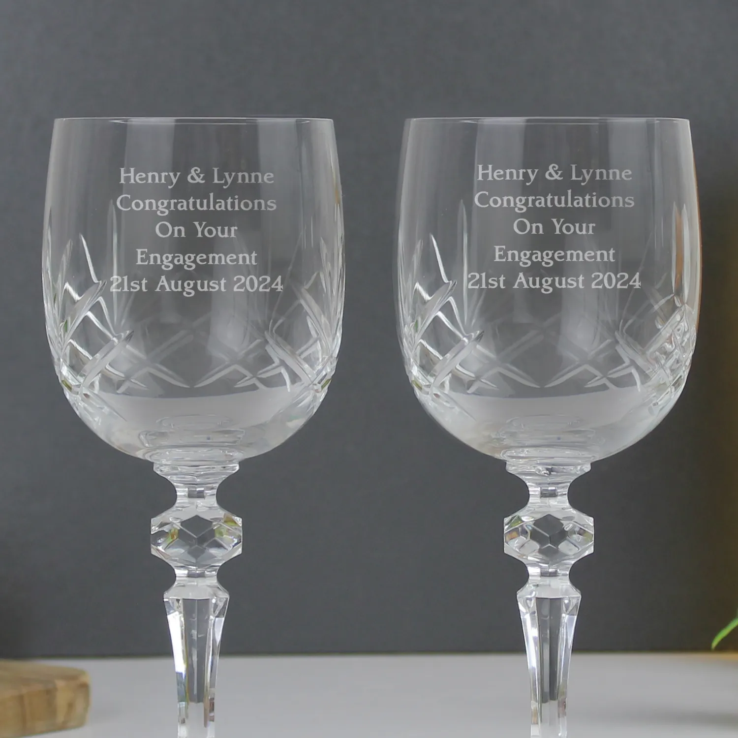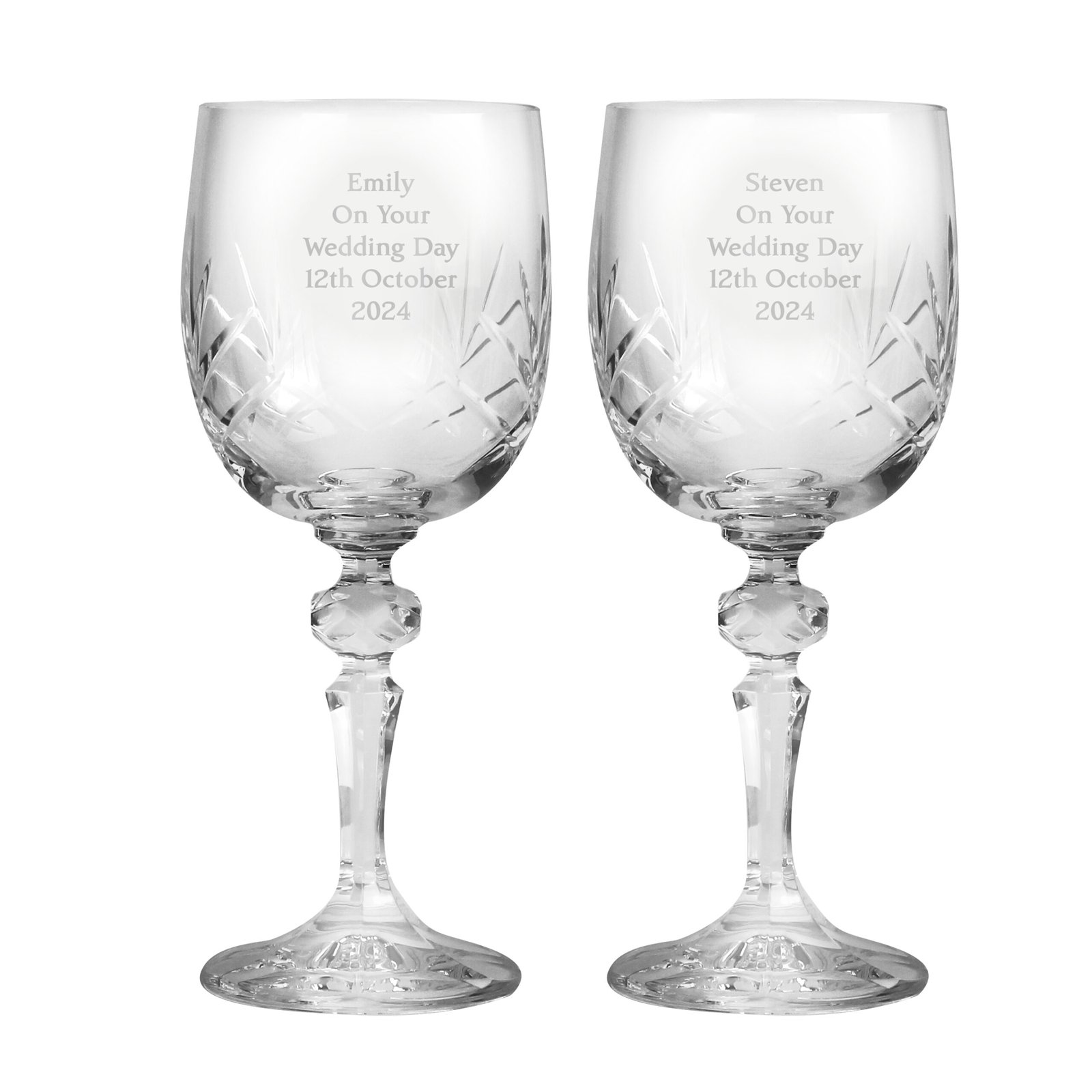 Celebrate the moment with elegance and personal charm using this Personalised Pair of Crystal Wine Glasses – a unique and memorable gift to treasure forever.