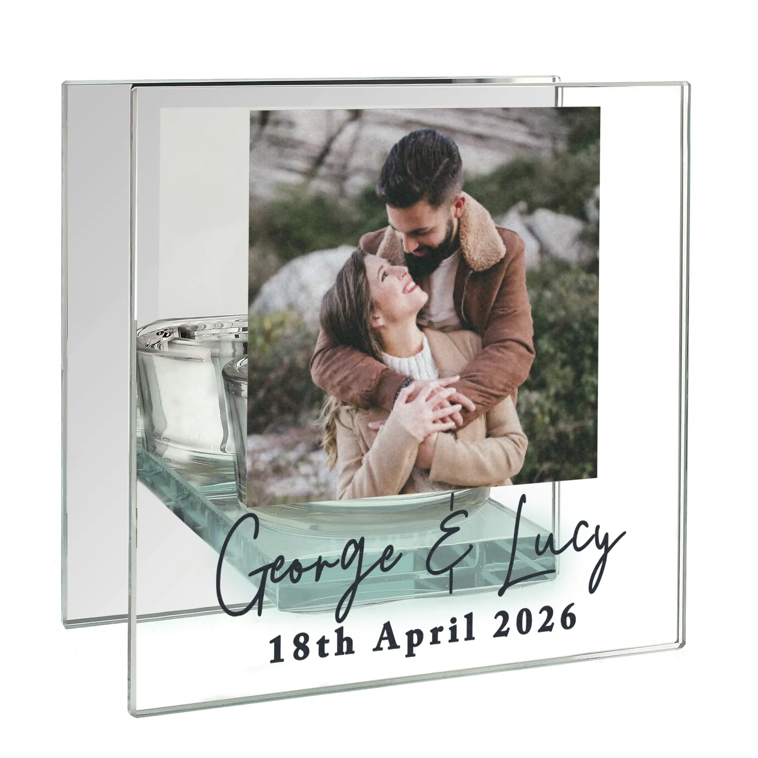 Personalised Any Message Photo Upload Mirrored Glass Tea Light Candle Holder