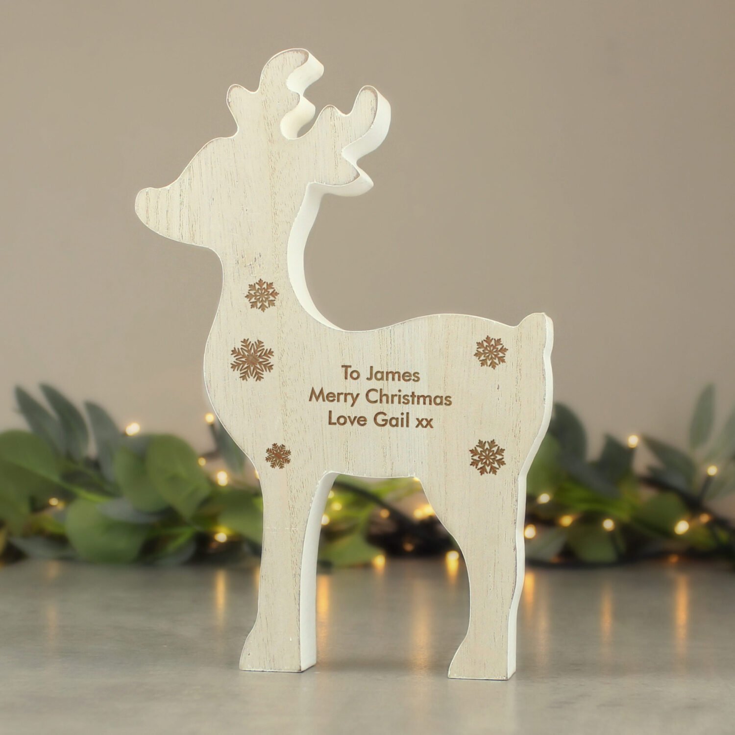 Personalised Any Message Rustic Wooden Reindeer Christmas Decoration
